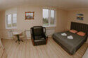 Двухместные номера большей площади с возможностью размещения на дополнительном месте (диване). Собственный санузел и душ. В номере чайник, набор посуды, холодильник. На улице общая беседка и мангал.