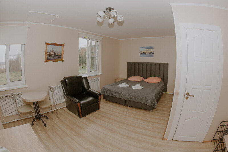 Двухместный номер с видом на Можайское водохранилище, из окон открывается прекрасный вид на водную гладь. Оборудован большой двуспальной кроватью, дополнительно есть возможность разместить ребенка (одноместное кресло-кровать). Все удобства в номере: душ, раковина, туалет. Для комфортного отдыха также имеются: телевизор, мини-холодильник, чайник, шкаф.