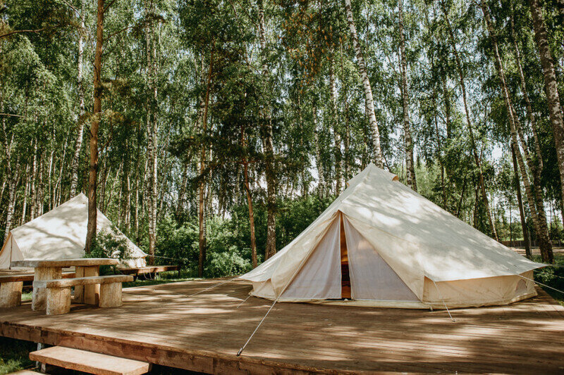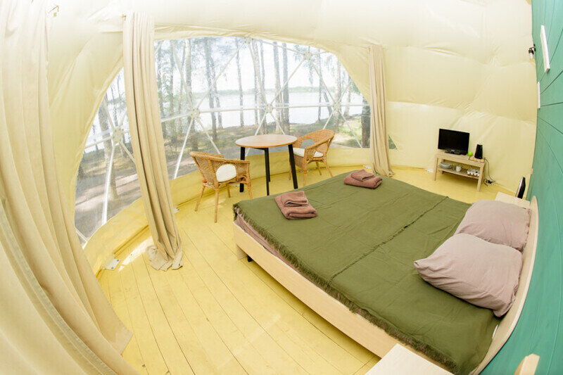 3 купольных дома (санузел внутри, вместимость - 2 человека). Имеется своя веранда, место для костра, чтобы наслаждаться треском угольков и природой в компании близких вам людей.