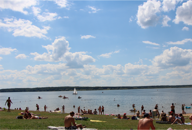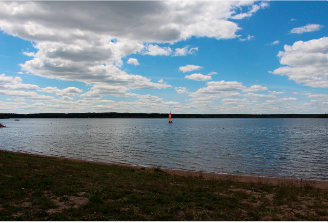 Тип пляжа: песчаныйОборудованный песчаный пляж в Красновидово для летнего отдыха с детьми.
