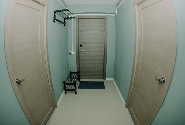 Четырехместный номер: с кухней и 2-мя комнатами, кровати: 2-е одноместные и 1 двухместная. Все удобства в номере: душ, раковина, туалет. Для комфортного отдыха также имеются: телевизор, чайник, посуда, холодильник.