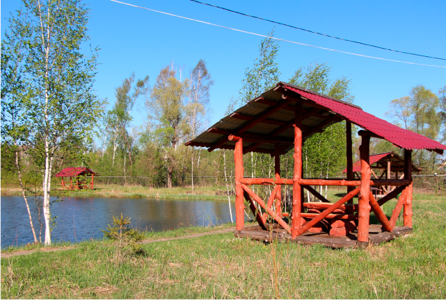 В парке расположены благоустроенные беседки. Оборудованные для пикника места сделают ваш отдых комфортным и безопасным. Отель с рестораном позволяет в любое время года устраивать крупные корпоративные мероприятия, празднование свадеб, юбилеев и других торжеств с возможностью расположиться с ночёвкой.
