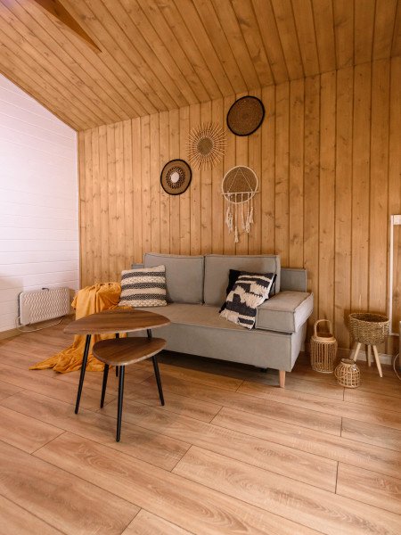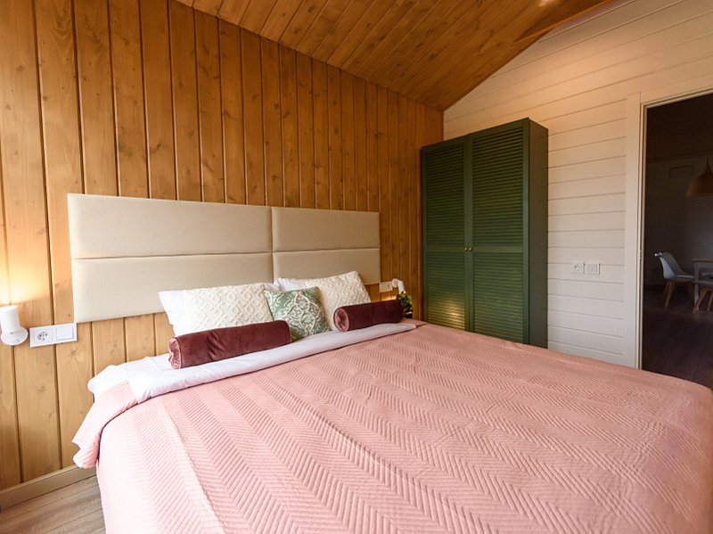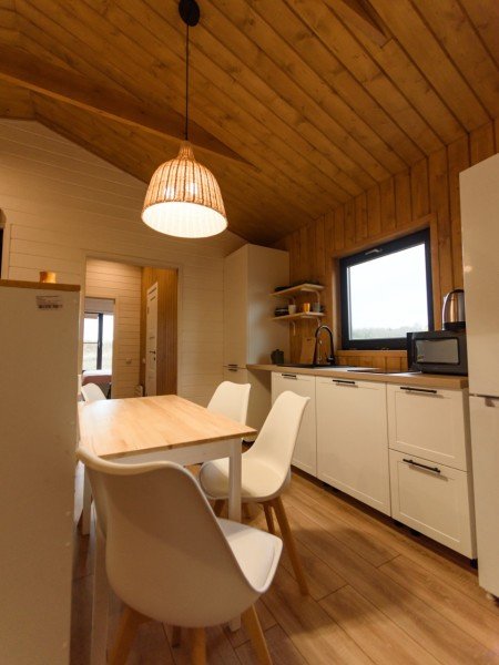 Насладитесь тишиной и уединением в одном из домиков, построенных из экологически-чистой древесины, оснащённых всем необходимым для комфортного проживания: кухней, санузлом, удобной мебелью и техникой.