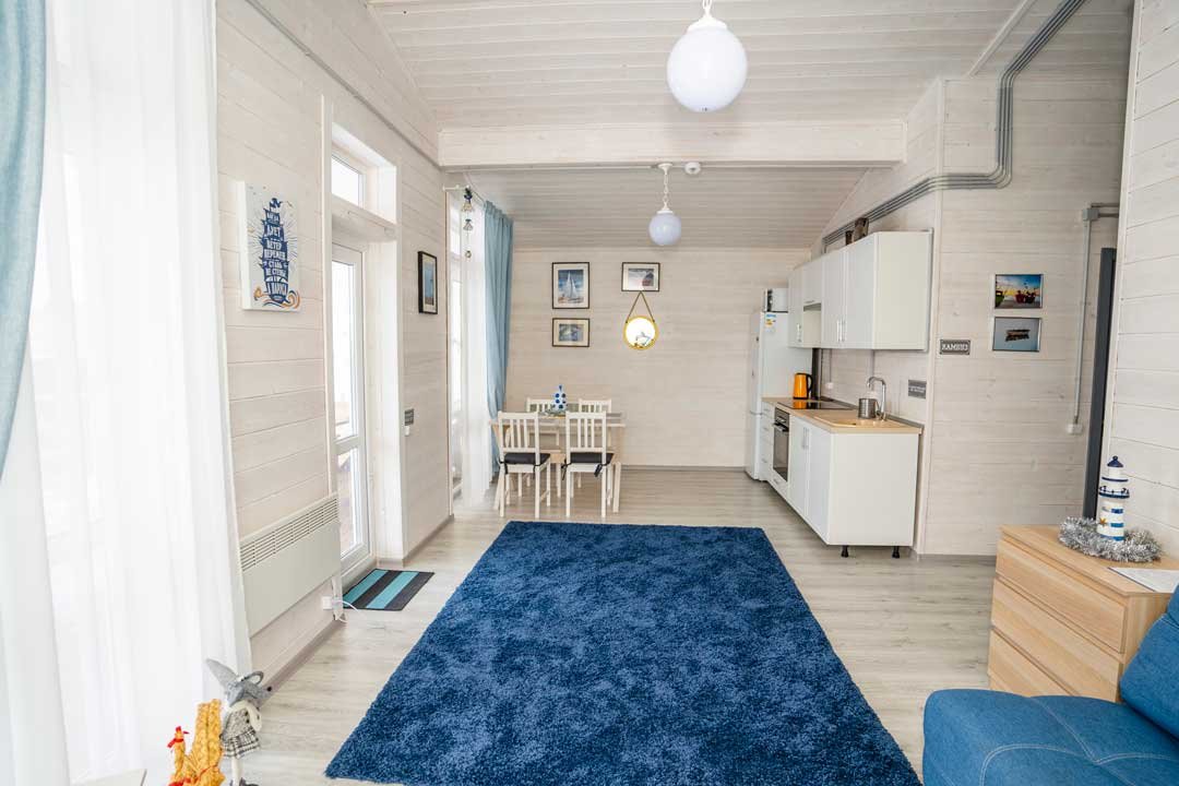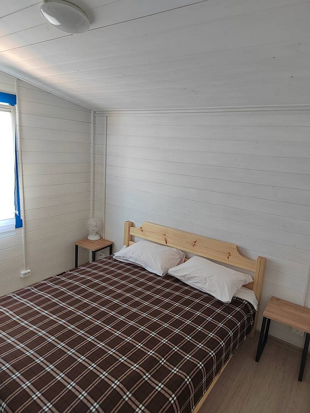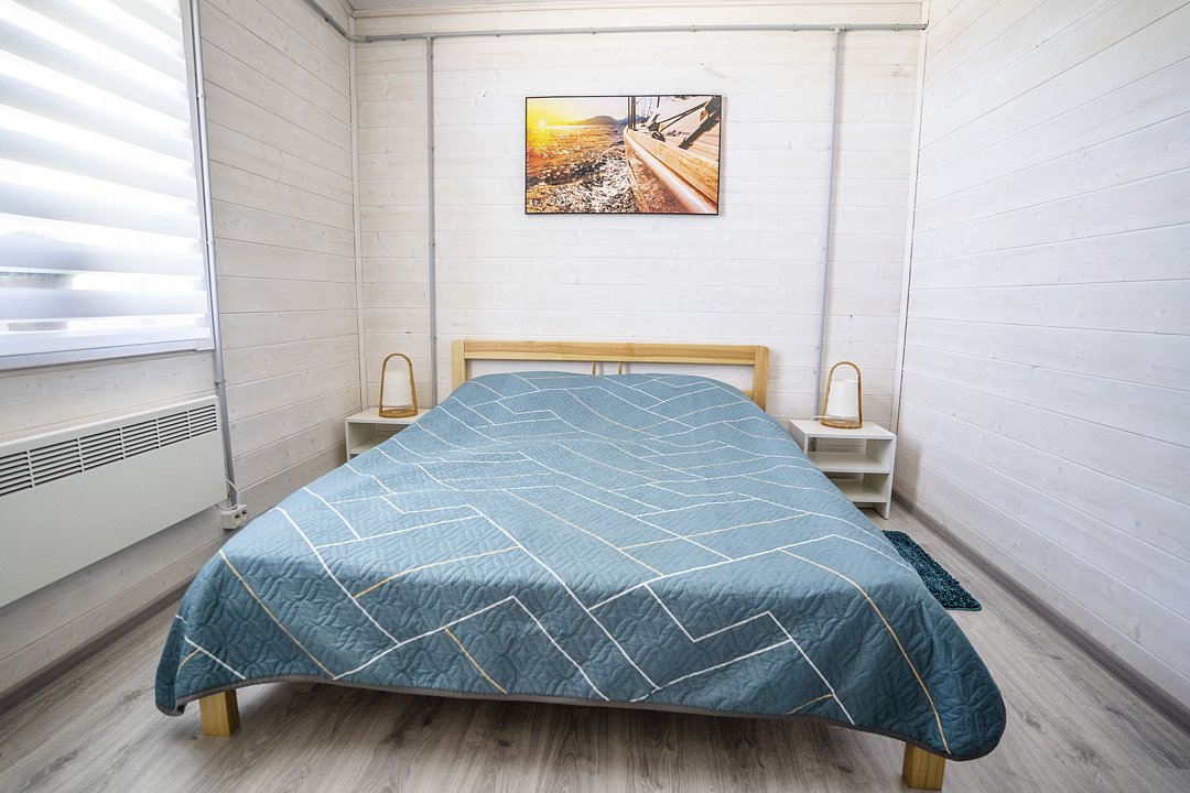 Уютный современный дом площадью 50 квадратных метров идеально подходит для размещения от 4 до 6 человек. В доме есть двуспальная кровать и два дивана-кровати, что позволяет комфортно разместить всех желающих.