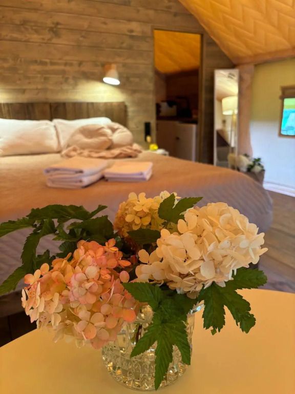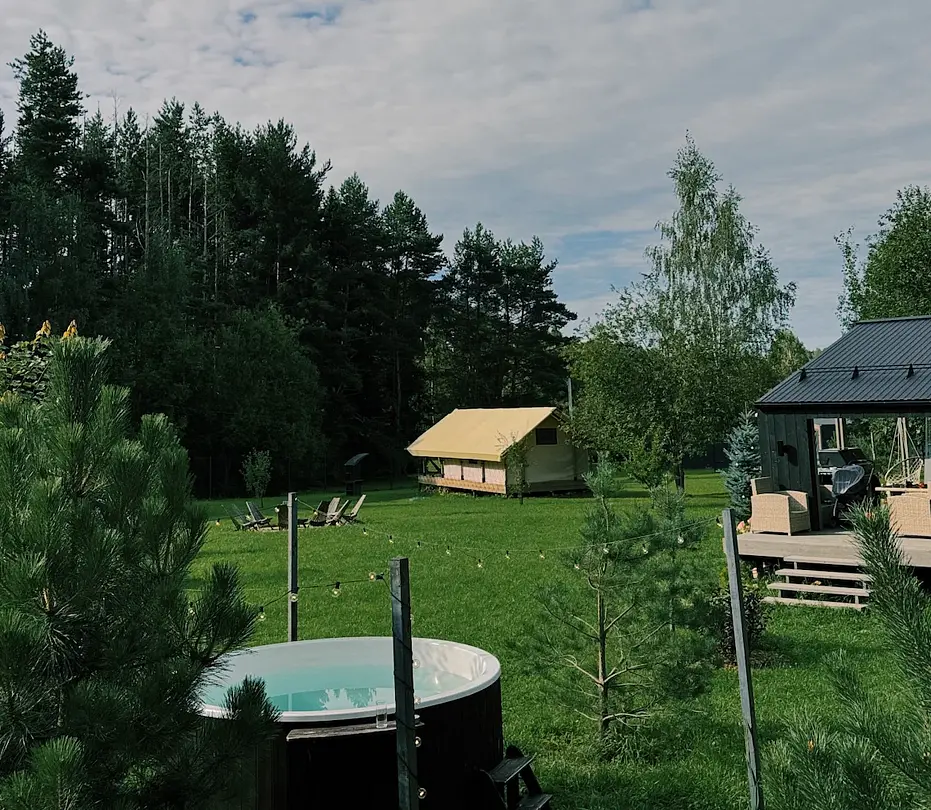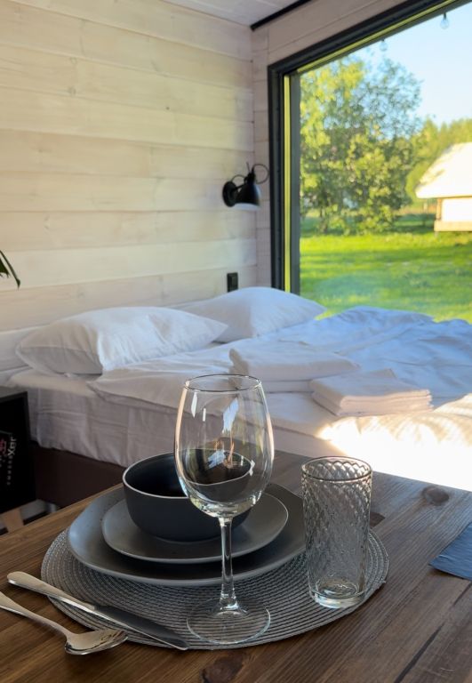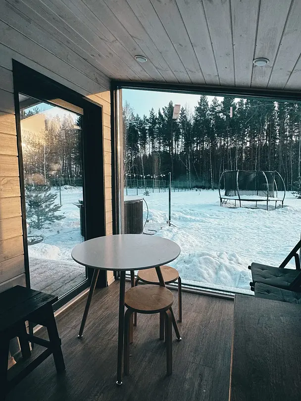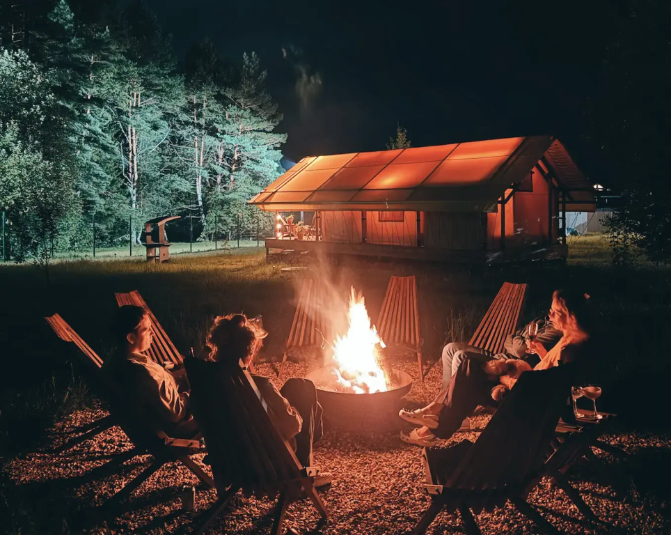 Развлечения найдутся на каждый сезон. Отдохните на открытой террасе с креслами, с видом на лес, расслабьтесь в уличном джакузи с цветной подсветкой или устройте уютные посиделки у костра под звездным небом. Летом доступна аренда сапбордов, а зимой – прокат беговых лыж. У каждого домика имеется своя мангальная зона для приготовления вкусных блюд на свежем воздухе.