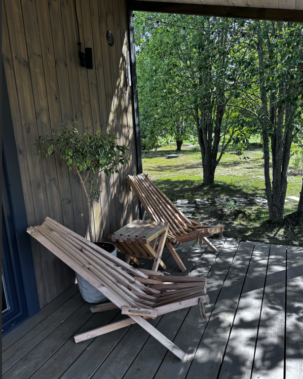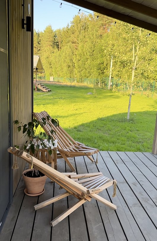 - большая терраса с шезлонгами и видом на лес;