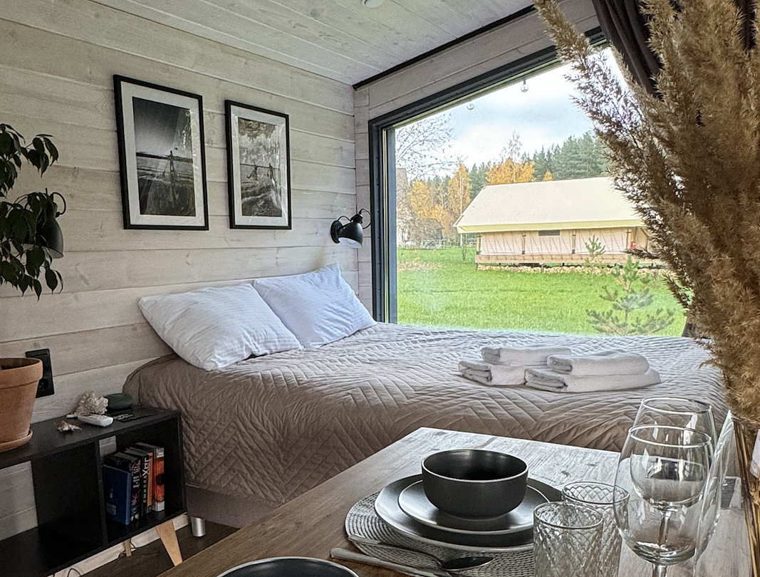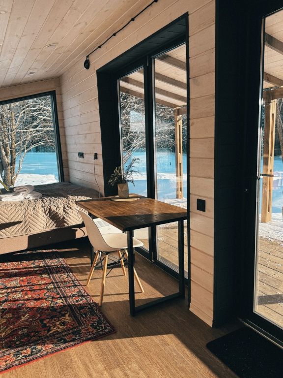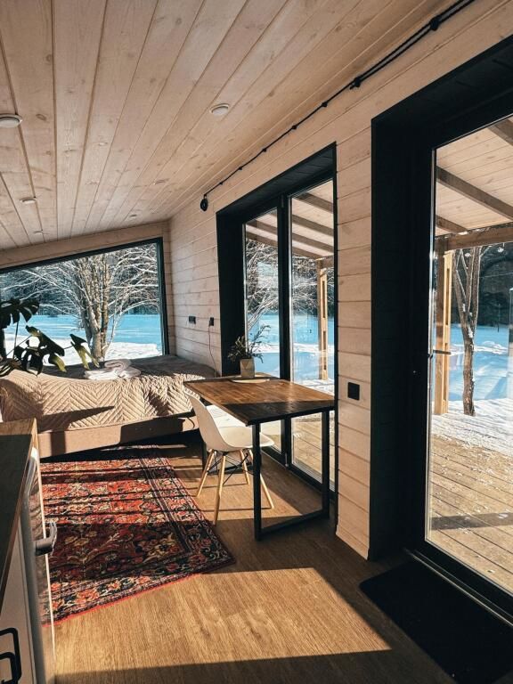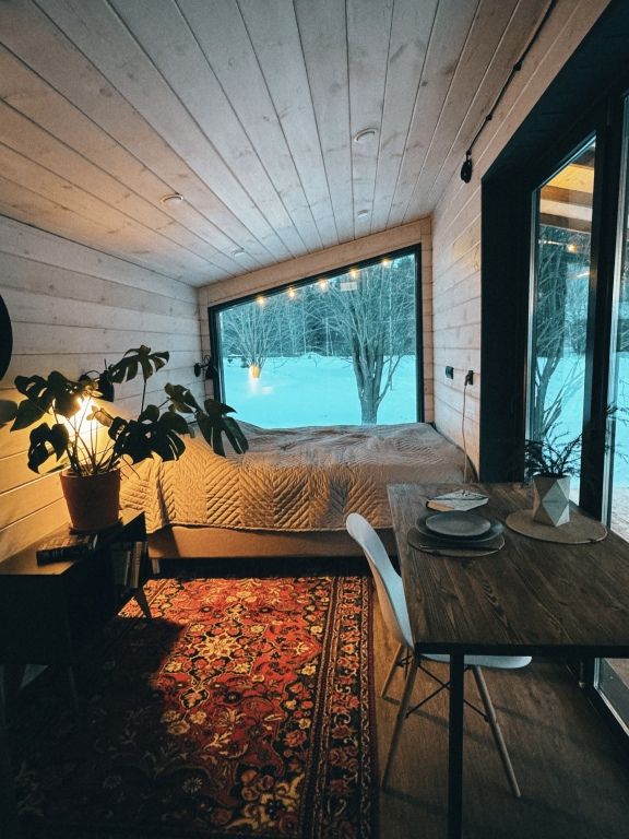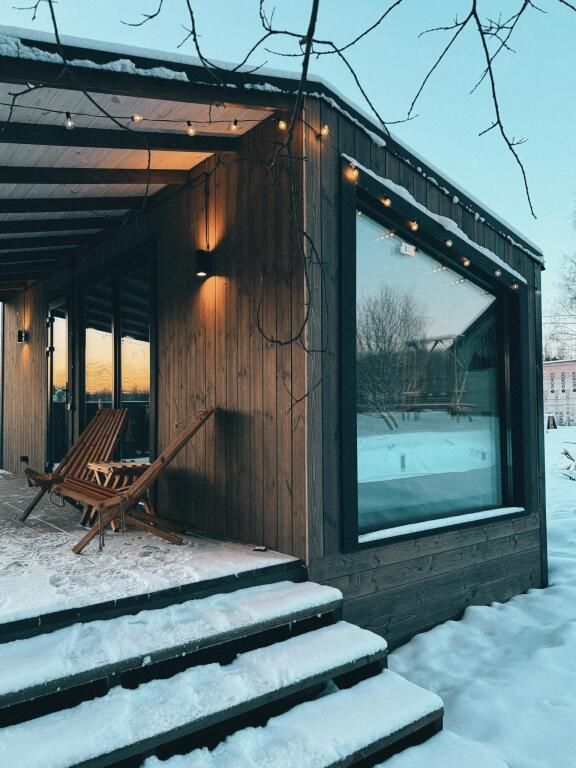 Уютный домик для двоих с панорамными окнами.