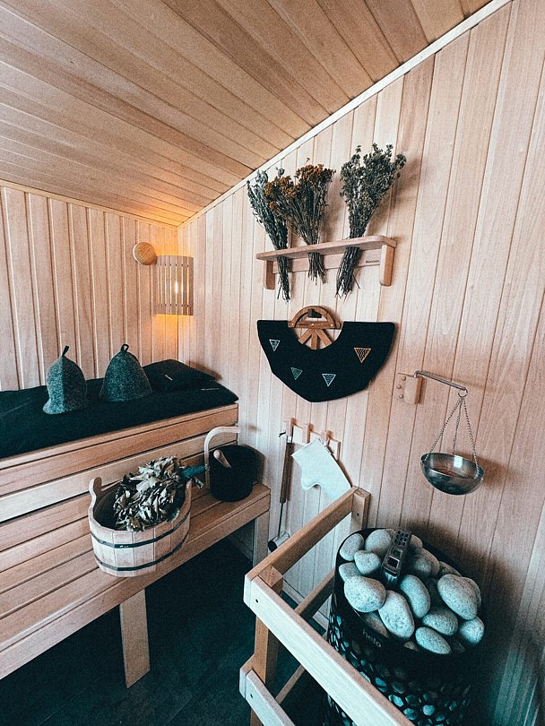 - ароматные травы, гималайская соль, веер для разгона пара;