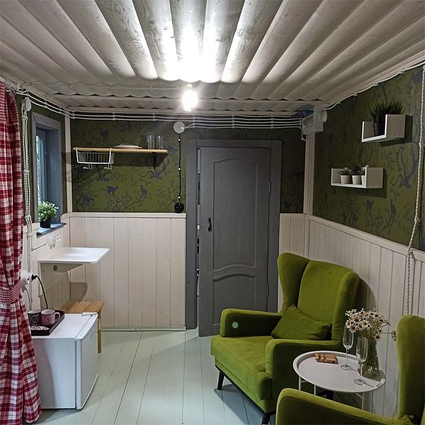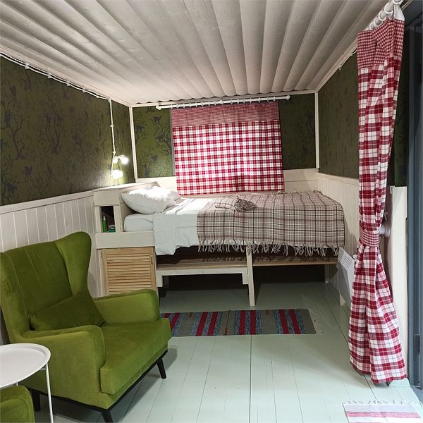 Домик дачного типа с уникальным дизайном в лесу позволит Вам насладиться уединением и покоем. В Домике Фермера есть 2 спальни, терасса, душ, туалет и все для комфортного проживания.