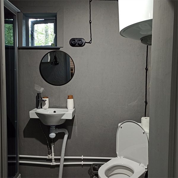 Домик дачного типа с уникальным дизайном в лесу позволит Вам насладиться уединением и покоем. В Домике есть все для комфортного проживания. Душ и туалет в каждом Домике.