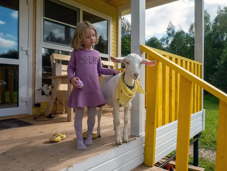 Семейный отдыхДостоинстваВ доме царит уют и чистота, каждая мелочь продумана. Дети остались в восторге от животных, хозяева очень радушные. Завтракали деревенскими продуктами, вкуснотища) Обстановка душевная, рекомендуем к посещению.