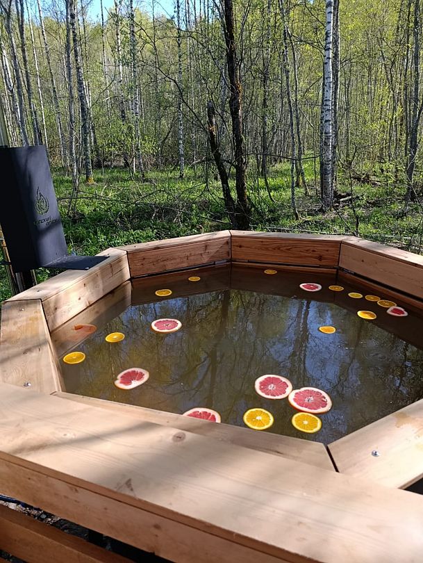 Банный чан установлен в лесу, что способствует полному погружению в природу и расслабление. Послужит и холодной купелью для контраста банных температур и самостоятельным горячим источником. Выбирайте свой вариант теплого отдыха!