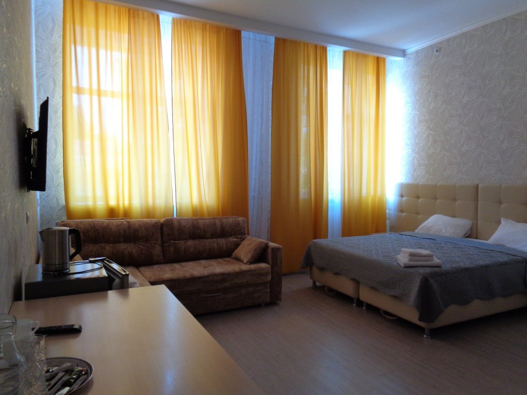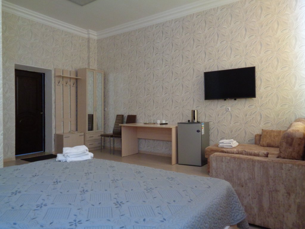 В номере гостей ждут телевизор и халат. Оснащение зависит от выбранной категории номера.