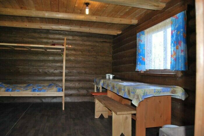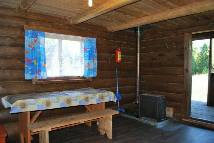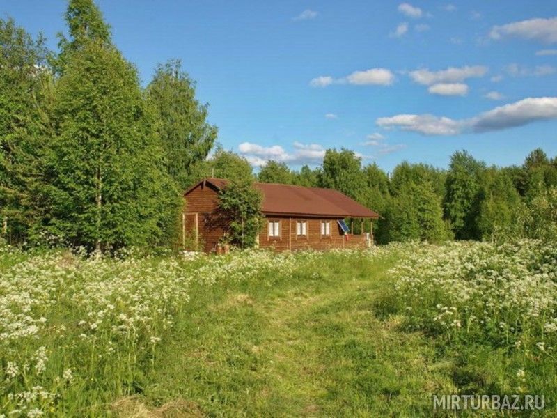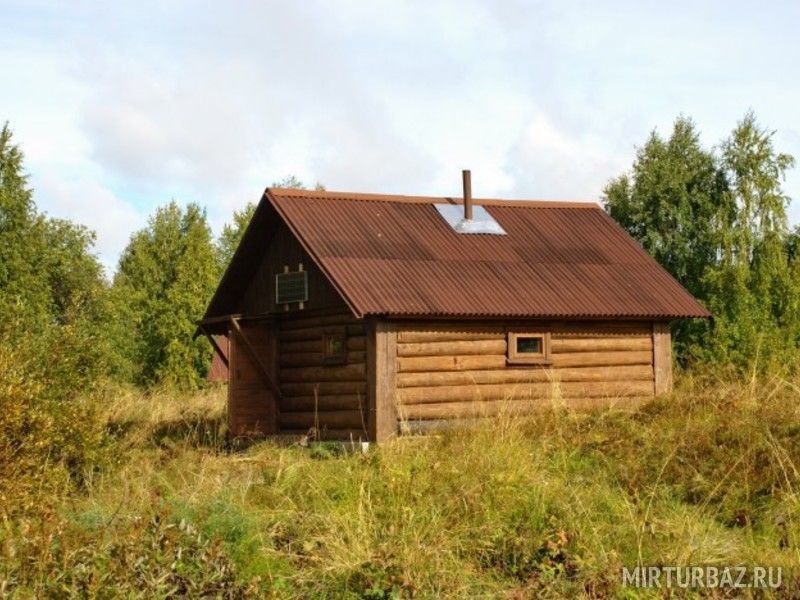 - Проживание в домике (сруб с печным отоплением и освещением от солнечных батарей);