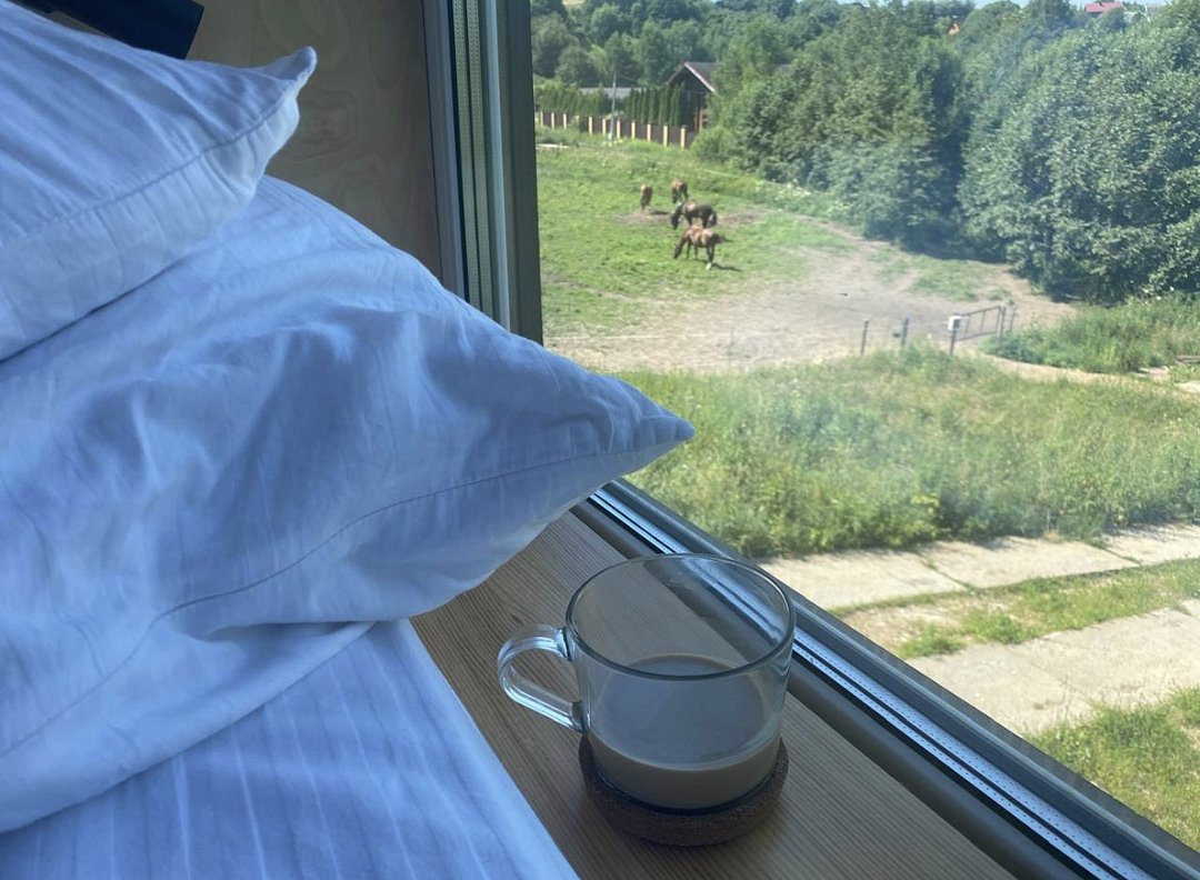 Дом построен в декабре 2023 года. В нем есть всё необходимое для вашего комфортного пребывания: тёплые полы, панорамное окно на всю стену с видом на гуляющих лошадей, холодильник, душ, фен, горячее водоснабжение, плита, раковина, телевизор с Алисой, набор продуктов для приготовления завтрака: домашние яйца, домашнее молоко, вся необходимая кухонная посуда, махровые халаты, банные полотенца, одноразовые тапочки, зубные щётки, паста, гель для душа и другие душевые принадлежности, мангал, уголь, аксессуары для мангала, дрова.