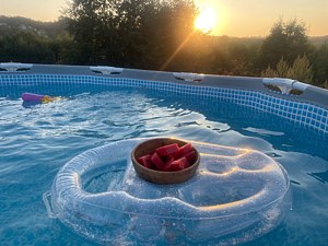 Тип бассейна: открытый бассейн, каркасный бассейнВода в бассейне: подогреваемый бассейнРядом с бассейном: полотенцаТемпература в бассейне: 34 °CПериод работы: летний сезонСтоимость