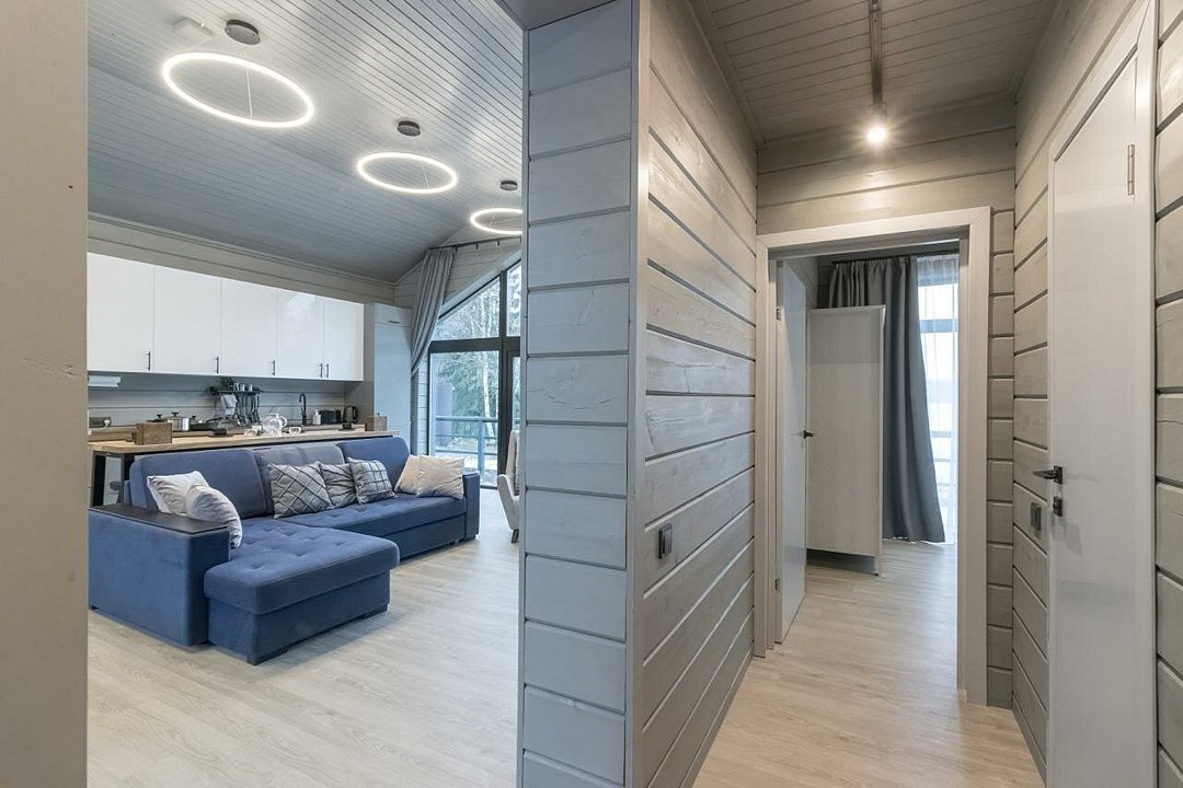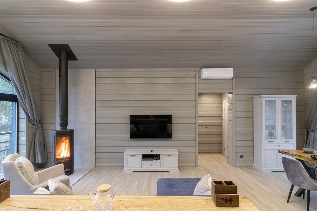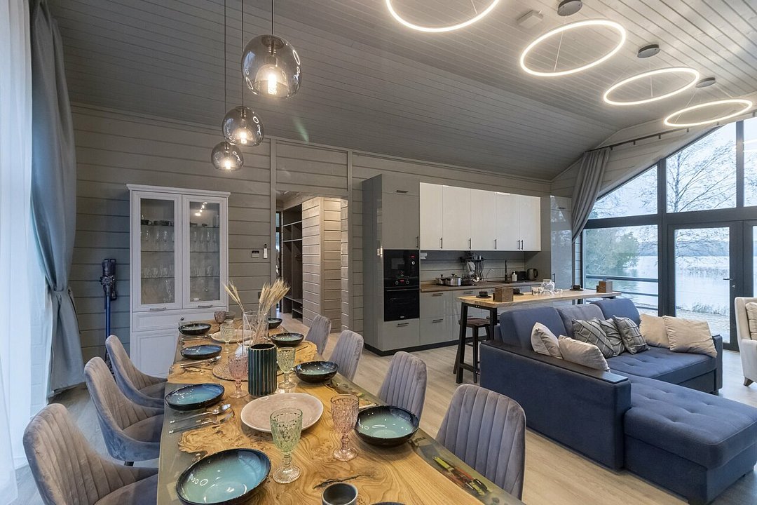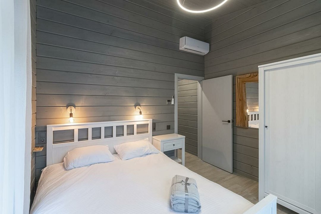 Внутри гостевого дома создана атмосфера уюта и современного комфорта. Здесь вас ждут три спальни, включая две с двуспальными кроватями и одну с двухъярусной кроватью, что делает его идеальным для семейного отдыха. Ортопедические матрасы, меланжевое постельное белье и пуховые одеяла обеспечат вам сладкий сон. В дополнение к этому, дом оборудован системой «умный дом», камином и полным комплектом бытовой техники, включая холодильник, плиту, посудомоечную машину и кофемашину.