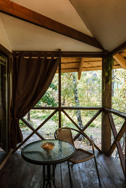 - Круглогодично. Домик «Затерянное гнездо» — сезонно (с 01.05 по 30.09).
