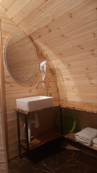 Благоустроенный домик со всему удобствами: двухспальная кровать, небольшой раскладывающийся диван, спутниковое TV, мини-кухня, душ ,санузел, раковина.