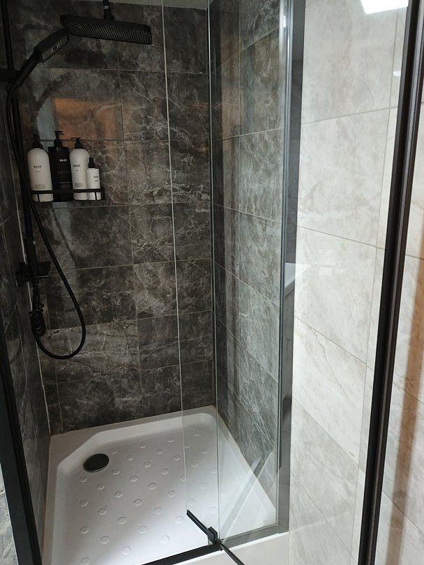 Ванна с феном, гелями для душа, мылом, шампунем, белоснежными полотенцами и халатами.