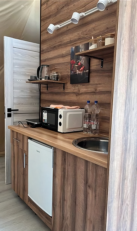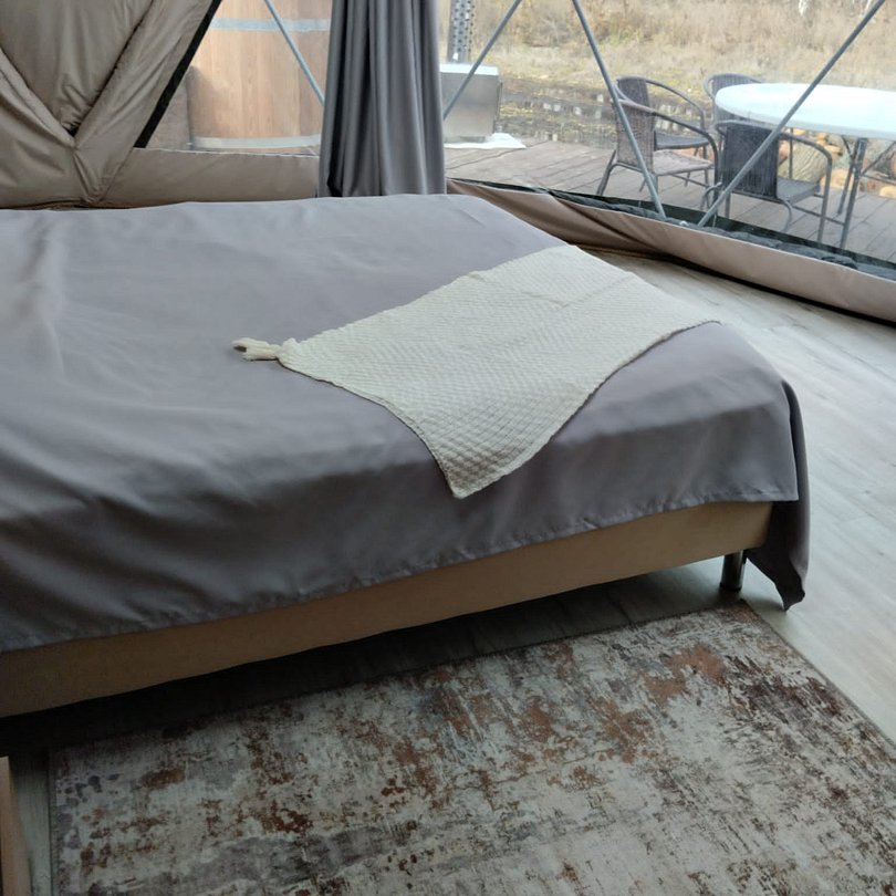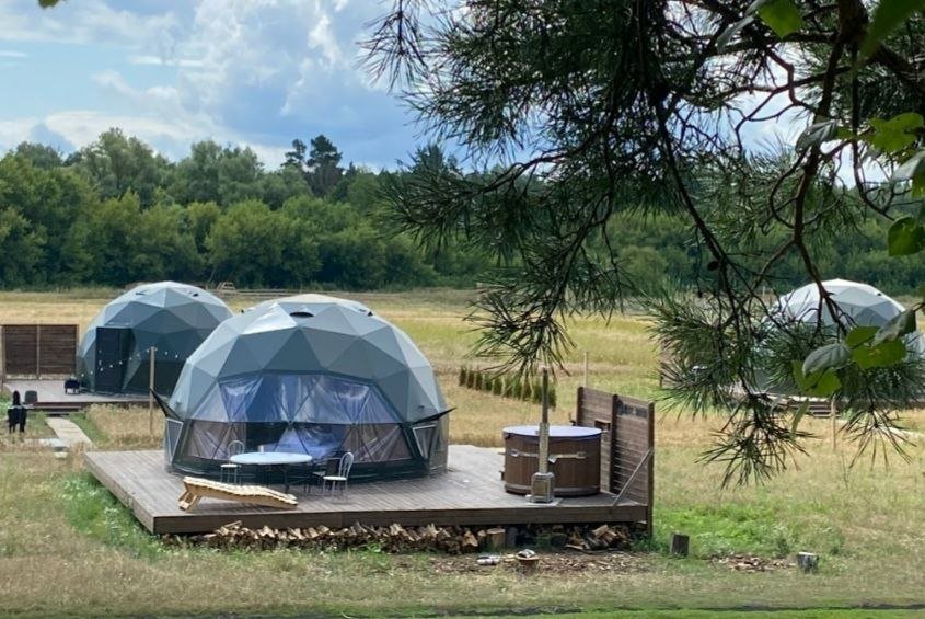 - комфорт и уют: гостевые домики или геокупола оборудованы всем необходимым для комфортного проживания: от удобных кроватей до электричества и даже ванных принадлежностей;