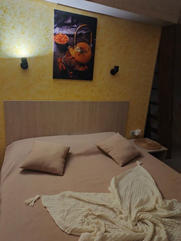 В номере: Wi-Fi, спальное место с ортопедическим матрасом (размер 160*200), постельное белье и полотенца, халаты, собственный санузел (туалет, умывальник, душ, фен, зубной набор, шампунь, гель для душа, мыло). Кухня с кухонным столом и стульями (плита, чайник, холодильник, посуда, сахарный песок, соль, перец, масло растительное для приготовления блюд).