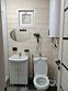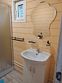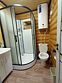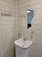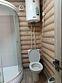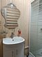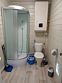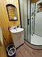 Санузел: раковина, зеркало, душевая кабина, унитаз, водонагреватель.