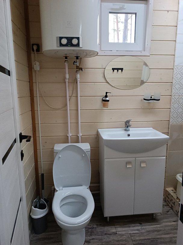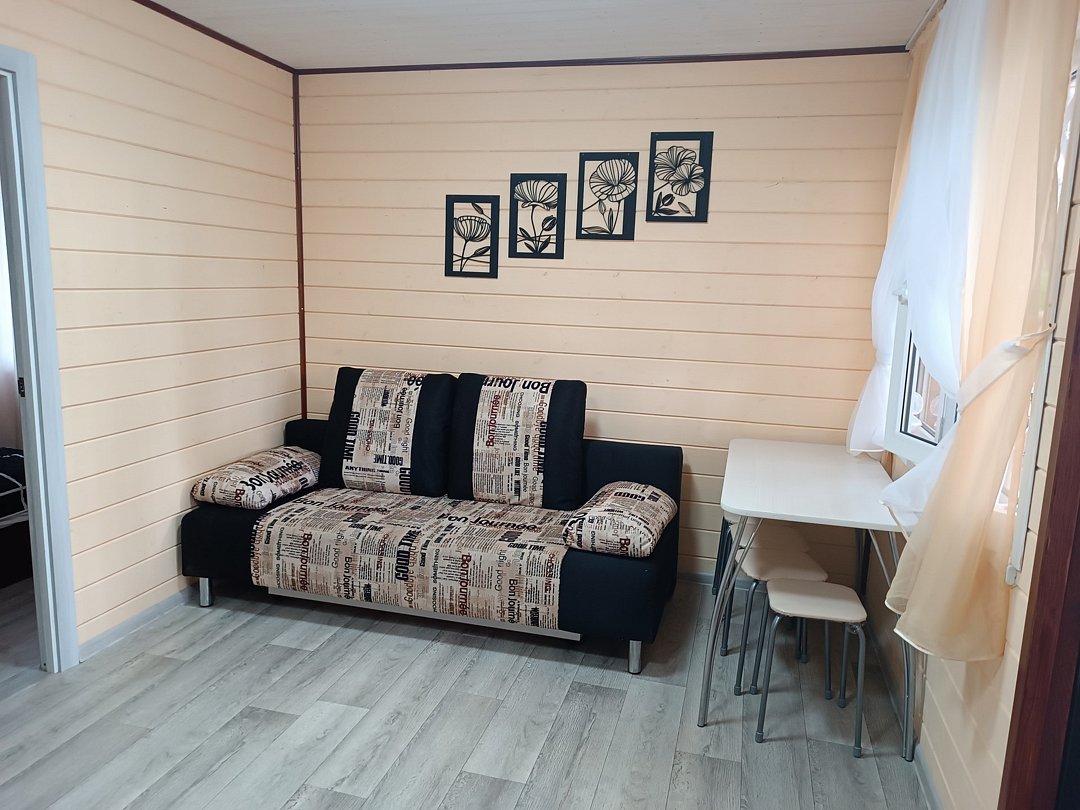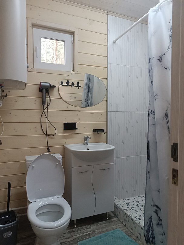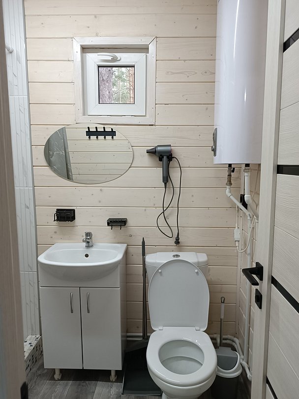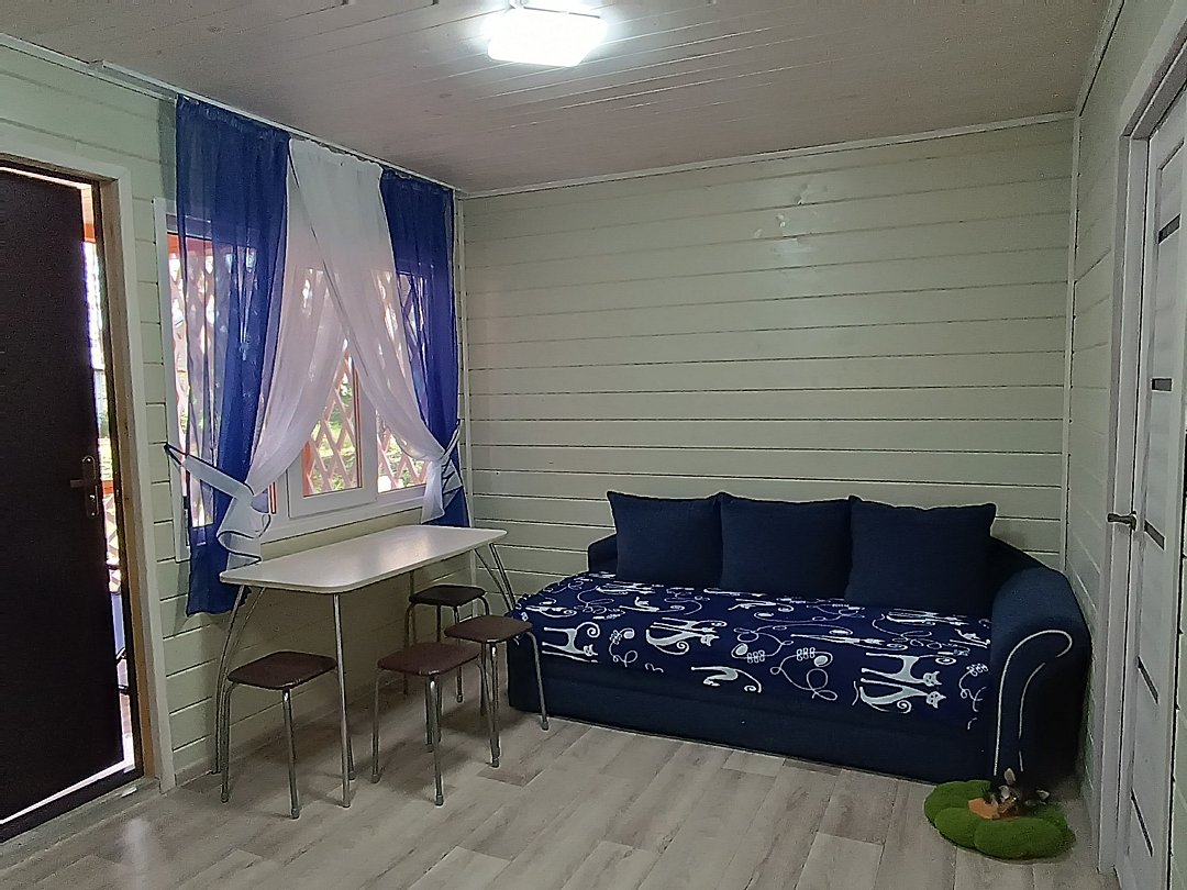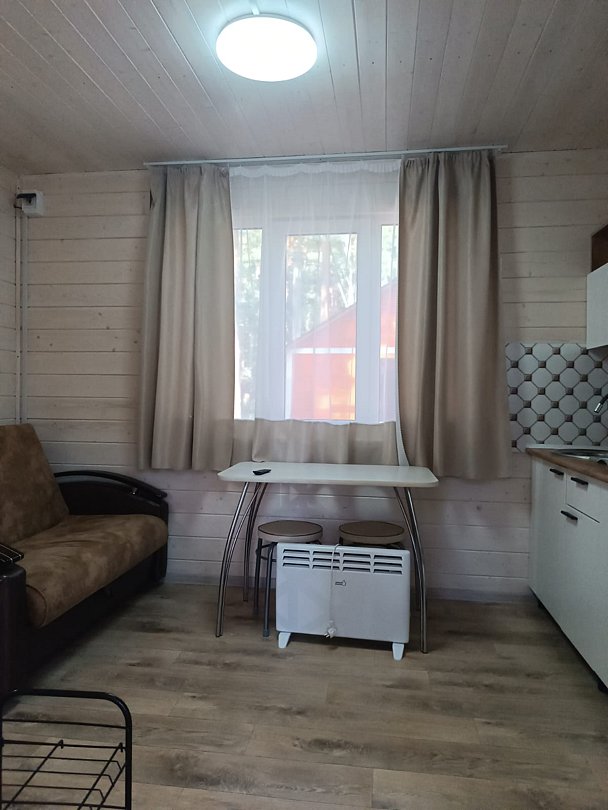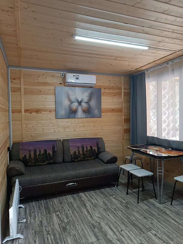 Одноэтажный дом, выполненный из экологически чистых материалов имитация бруса, отапливается теплыми полами. Дом рассчитан до 5 человек.