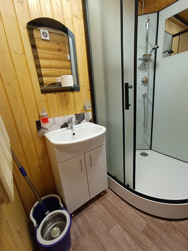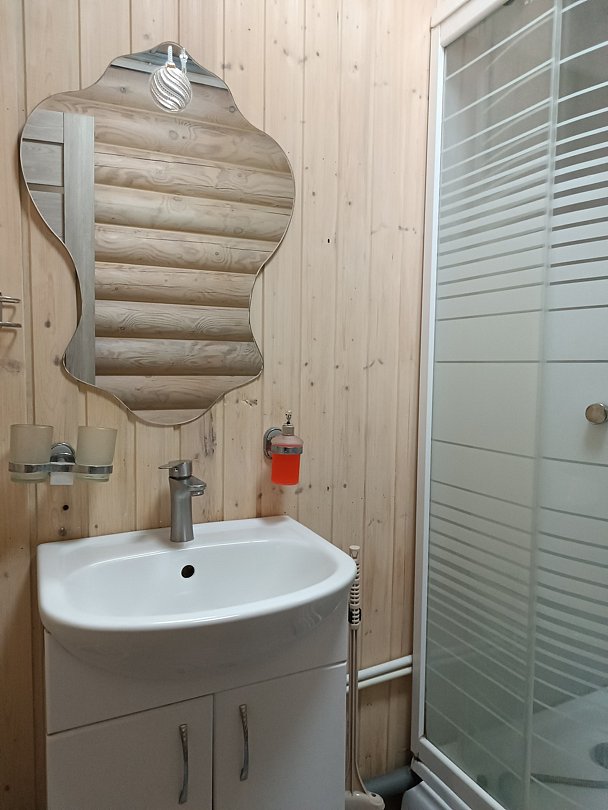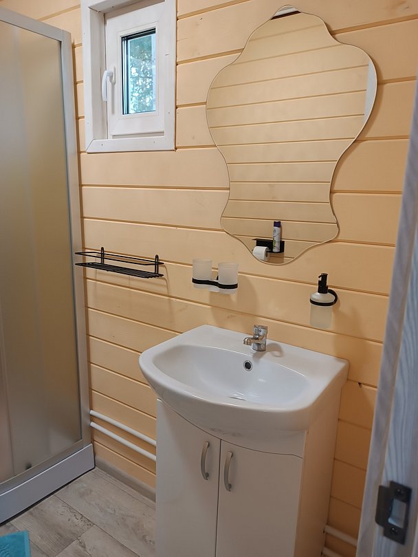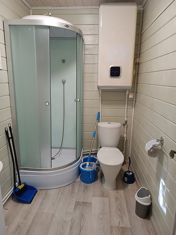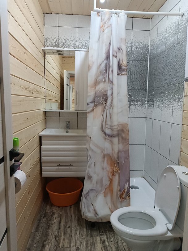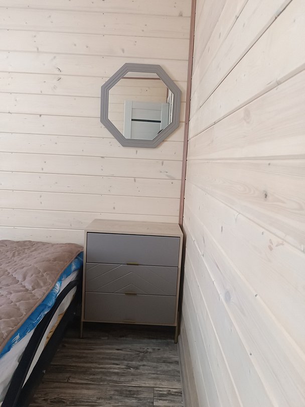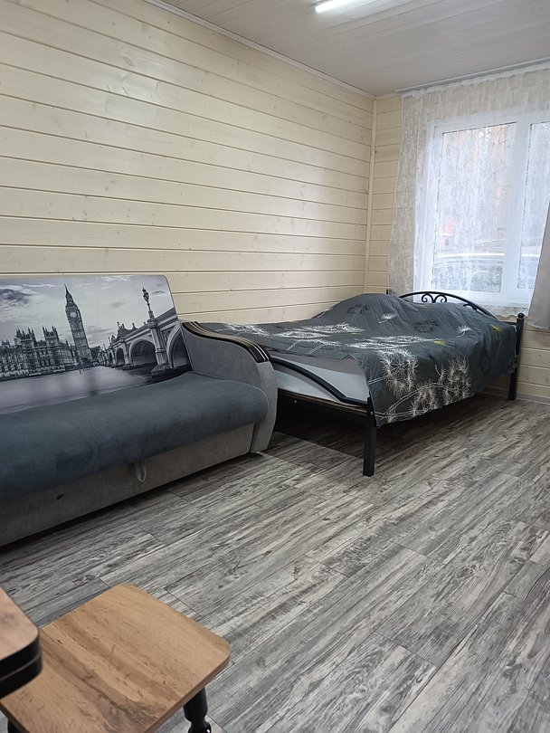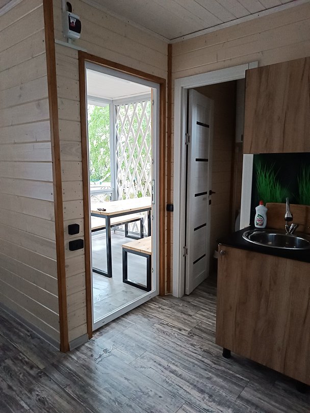 Одноэтажный дом, выполненный из экологически чистых материалов имитация бруса, отапливается теплыми полами. Дом рассчитан до 5 человек.