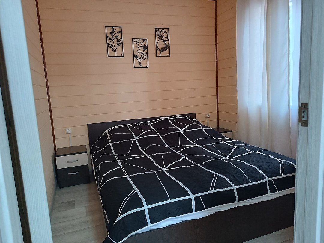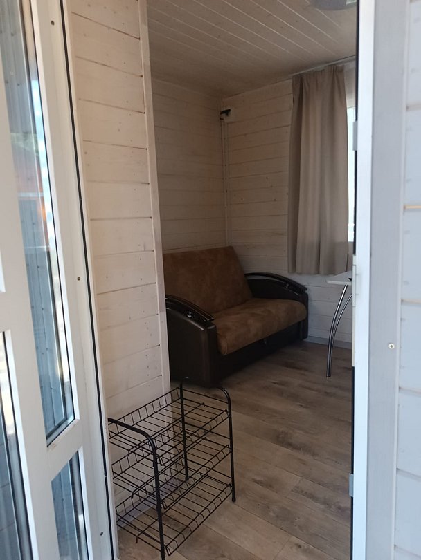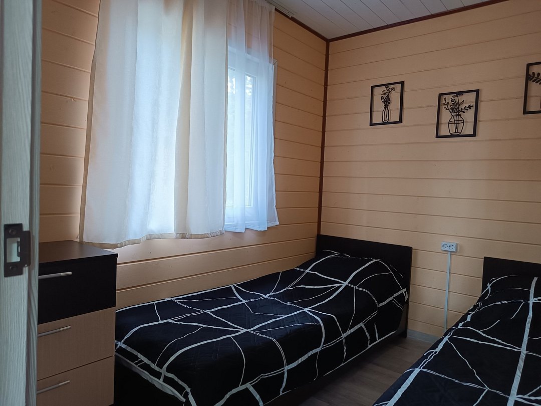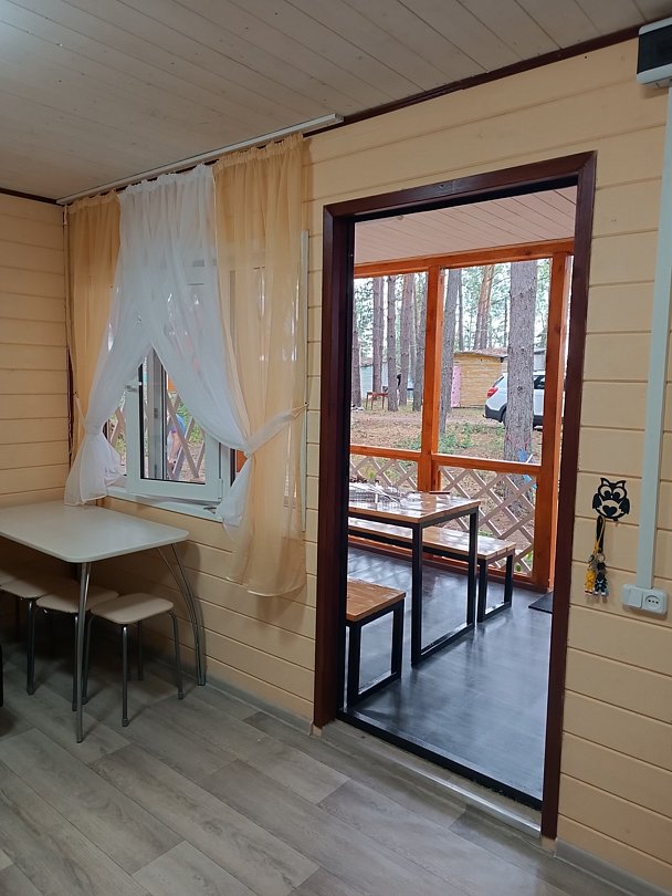 В доме есть две спальни , кухня-гостиная и санузел. Дом расположен практически на первой береговой линии. С веранды видна детская площадка и через нее можно попасть на пляж.