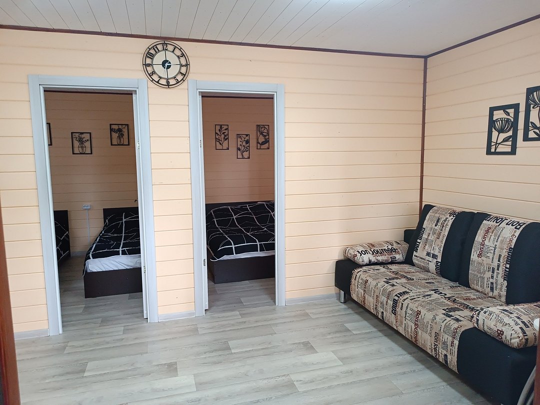 Одноэтажный дом, выполненный из экологически чистых материалов, имитация бруса, отапливается теплыми полами. Дом рассчитан на 6 человек.