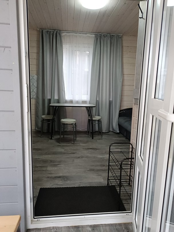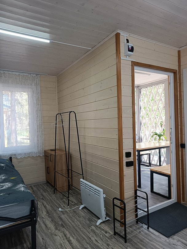 В доме две комнаты: кухня-гостиная и спальная комнаты.