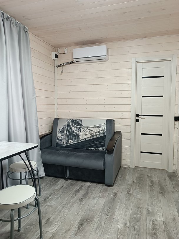 Дом студия рассчитан на 2 взрослых и 2 детей. Находится рядом с детской площадкой.