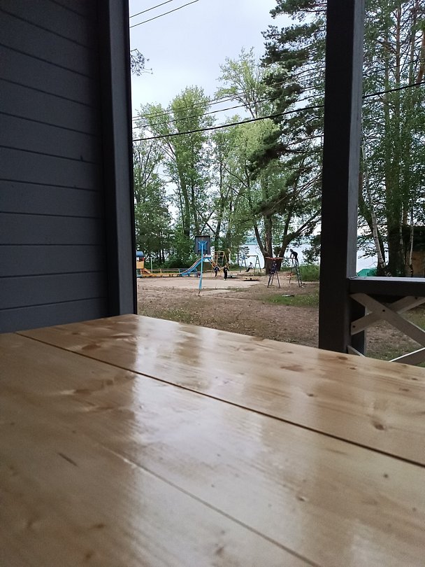 С веранды видна детская площадка и через нее можно попасть на пляж.