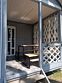 К дому пристроена веранда, в которой стоит стол и две лавки, выполненные в стиле лофт.