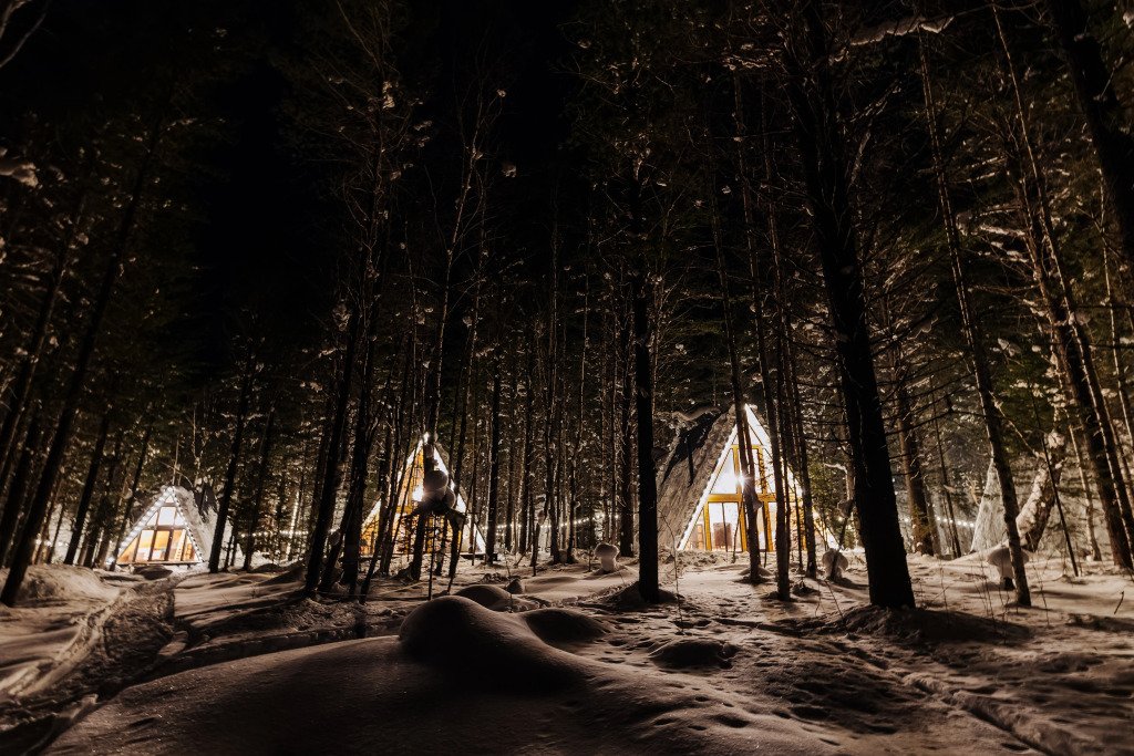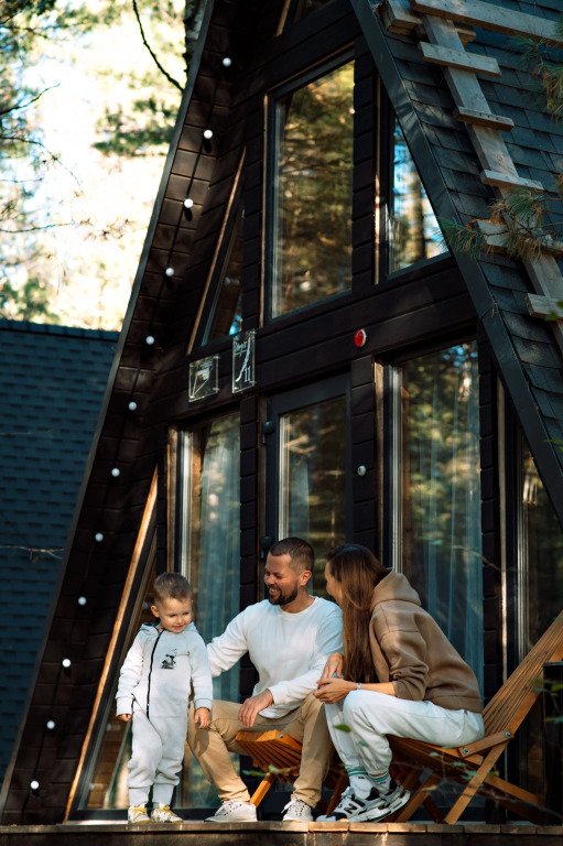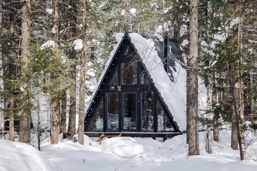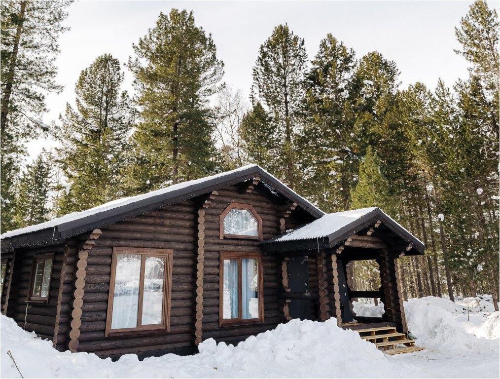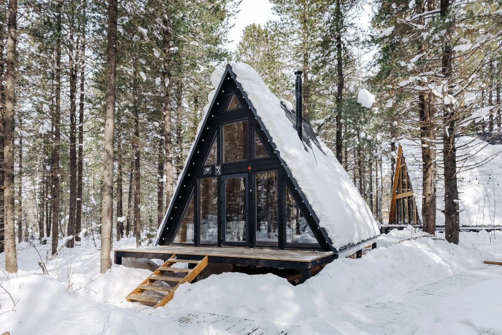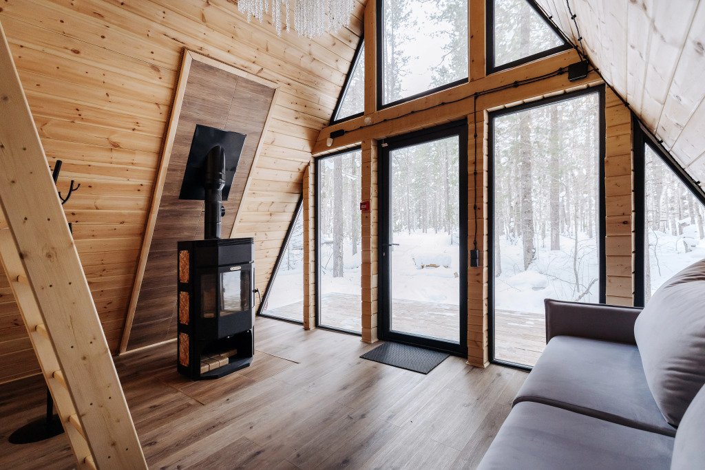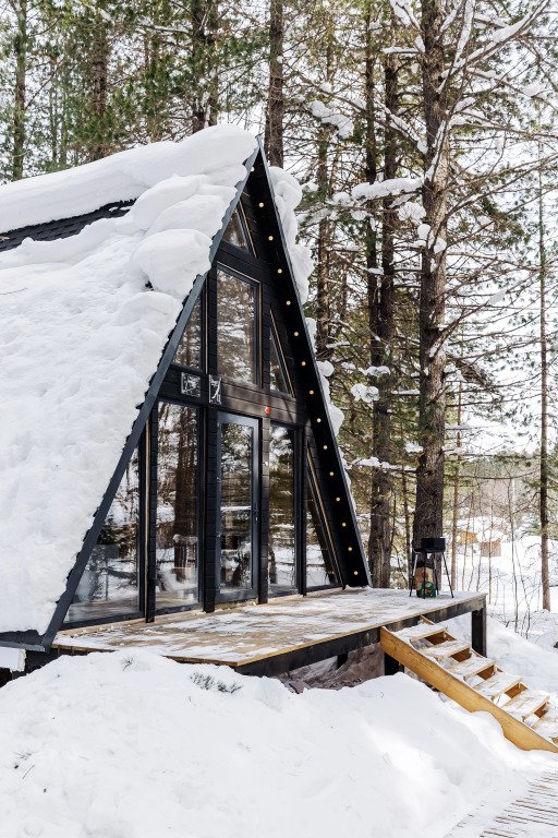 На территории расположены дома в стиле а-фрейм, в которых гости найдут спальни, гостиные, оборудованные кухни, собственные камины и панорамные окна с видом на тайгу, а также террасу.