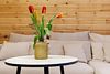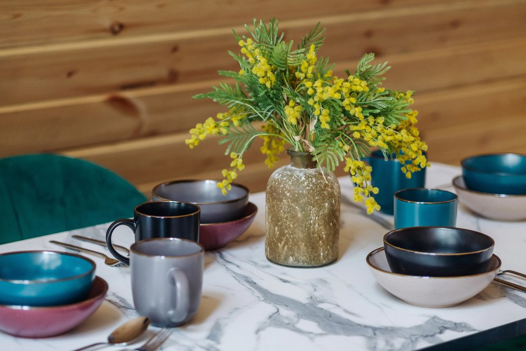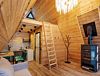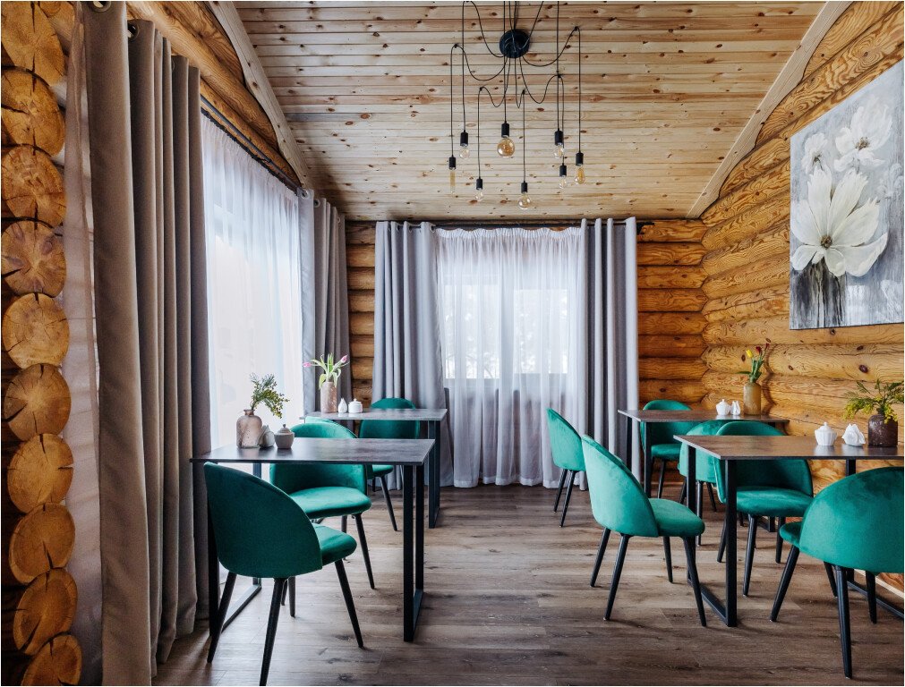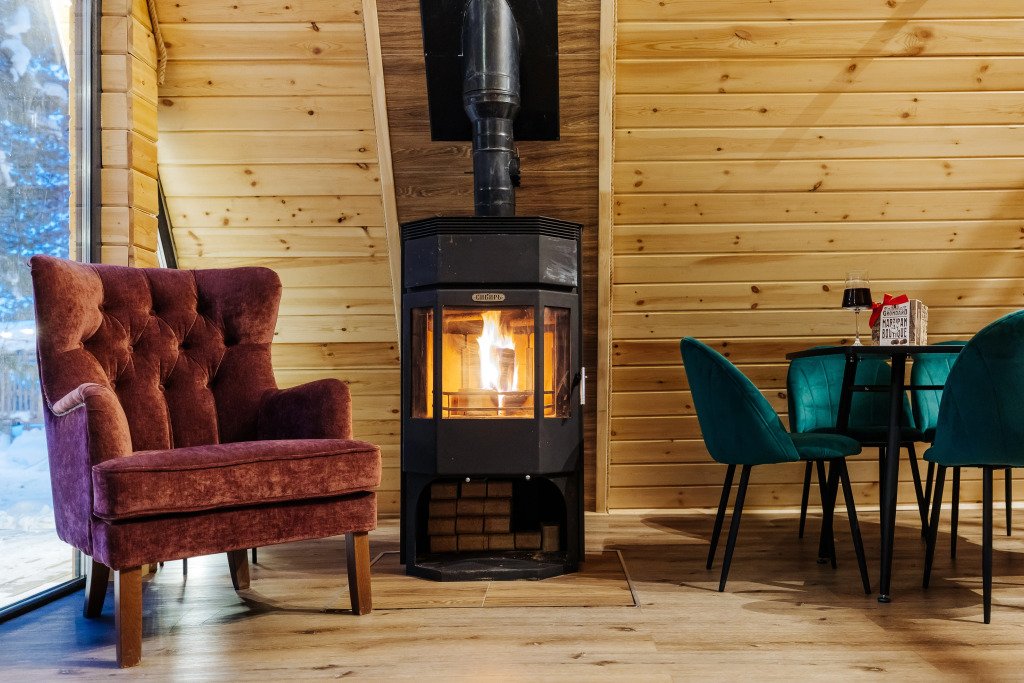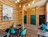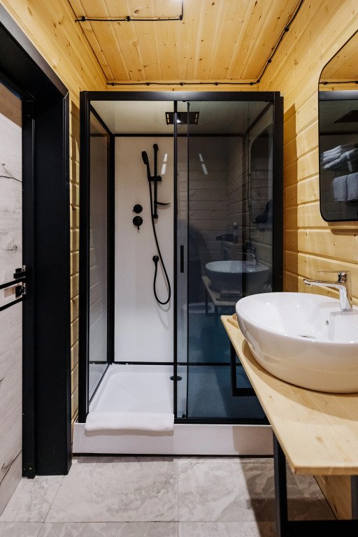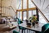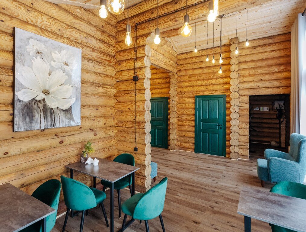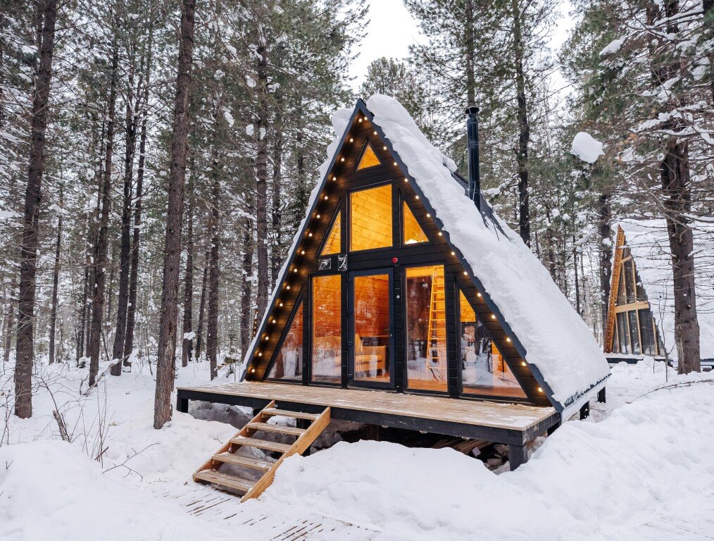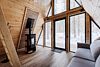 На территории расположены дома в стиле а-фрейм, в которых гости найдут спальни, гостиные, оборудованные кухни, собственные камины и панорамные окна с видом на тайгу, а также террасу.