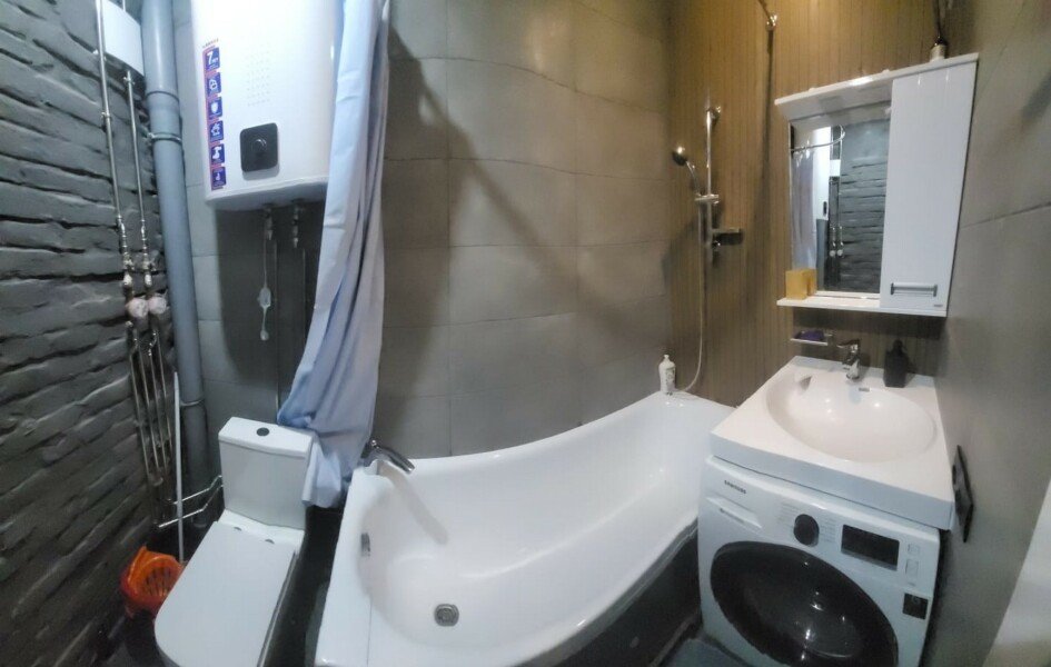 Квартира выполнена в современном стиле лофт, который создает ощущение уюта и элегантности. Просторная светлая гостиная сочетает комфорт и функциональность: здесь не только два удобных дивана, но и фортепиано, позволяющее вам наслаждаться музыкой во время отдыха. Кухня полностью оборудована всем необходимым для вдохновения кулинарных экспериментов, а высокие потолки и открытые фактуры стен придают интерьеру особую привлекательность.