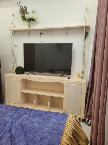 Спальня предлагает удобную двуспальную кровать и полный комплект постельного белья, что обеспечит вам сладкие сны. Просторные шкафы позволят разместить все ваши вещи, оставляя при этом ощущение свободы и уюта. Апартаменты идеально подходят для тех, кто ценит комфорт и стиль в сочетании с функциональностью.