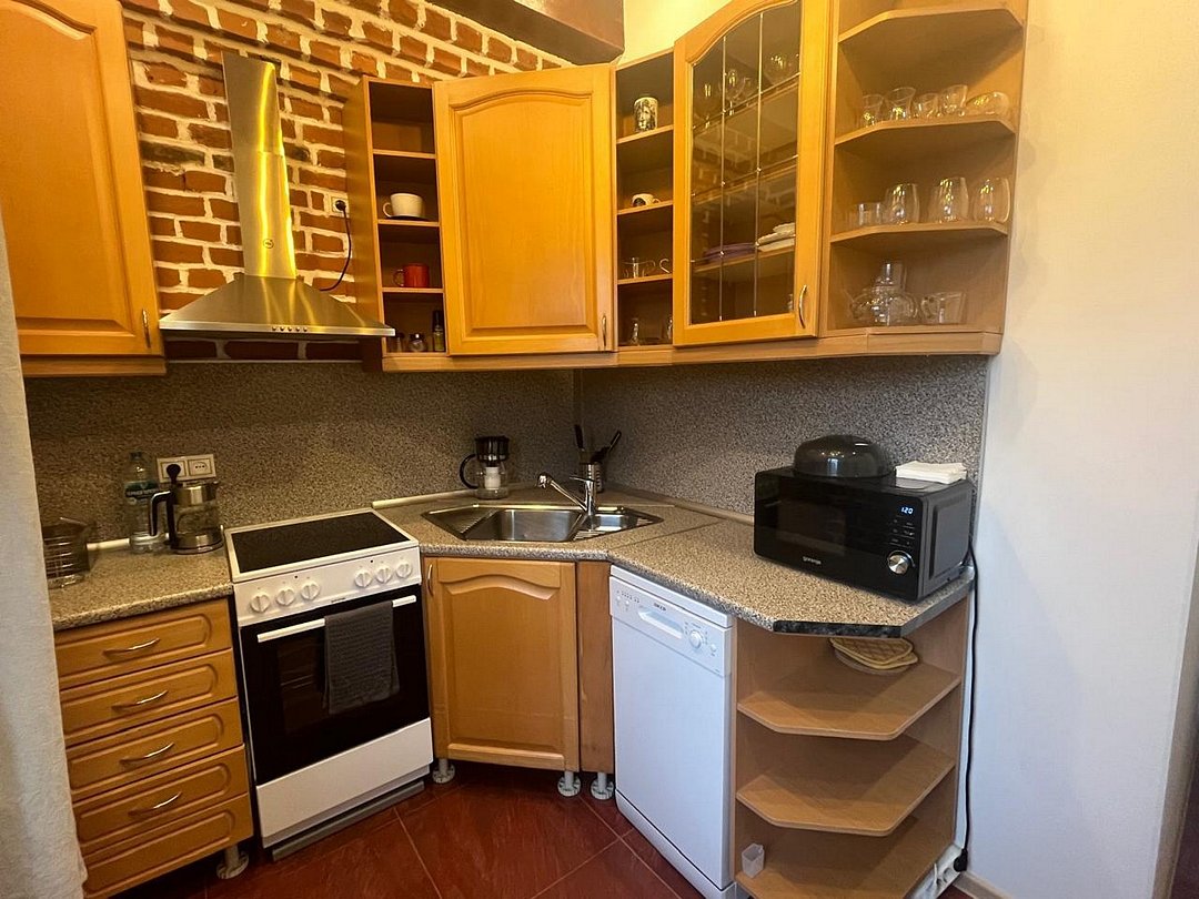 Кухни полностью укомплектованы всем необходимым, что делает процесс приготовления пищи приятным и простым. Высокие потолки и открытые фактуры стен придают интерьеру особый шарм.