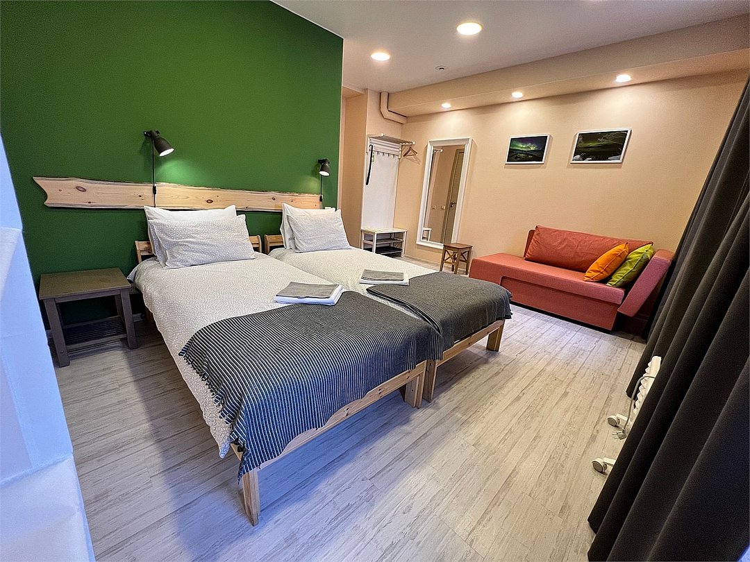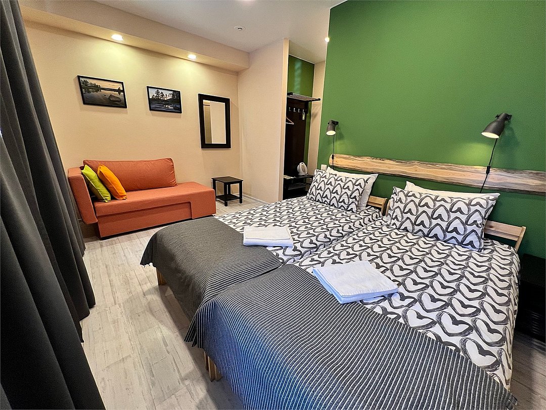 Стандартный номер с двумя односпальными кроватями и диваном