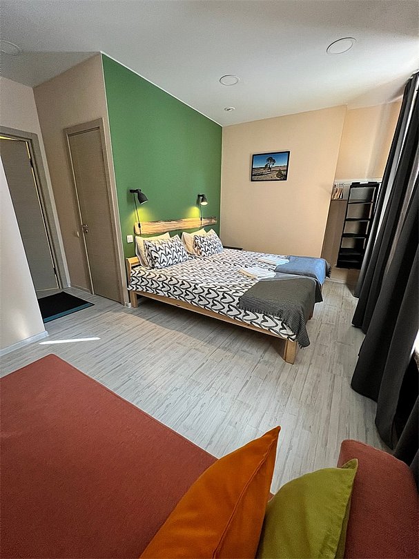 Мы предоставляем гостям полную автономию и работаем в режиме полного отсутствия персонала. При необходимости общаемся с гостями посредством мессенджеров 24/7. Каждый номер рассчитан максимум на 3 человек. В распоряжении гостей собственная ванная комната и санузел. Предоставляются тапочки, полотенца и постельное белье. По запросу предоставляются фен, одноразовые средства личной гигиены, гладильные принадлежности, утюг. На всей территории отеля работает бесплатный wi-fi.Услуги и удобства