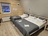 Размер 41 - 45 кв. м. Двухэтажные апартаменты в которых имеется: пять односпальных кроватей. На первом этаже три односпальные кровати, шкаф, центральное отопление, телевизор, чайник, микроволновая печь, холодильник, посуда, санузел. На втором этаже две односпальные кровати. Вход в апартаменты осуществляется с улицы.