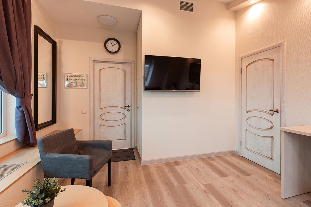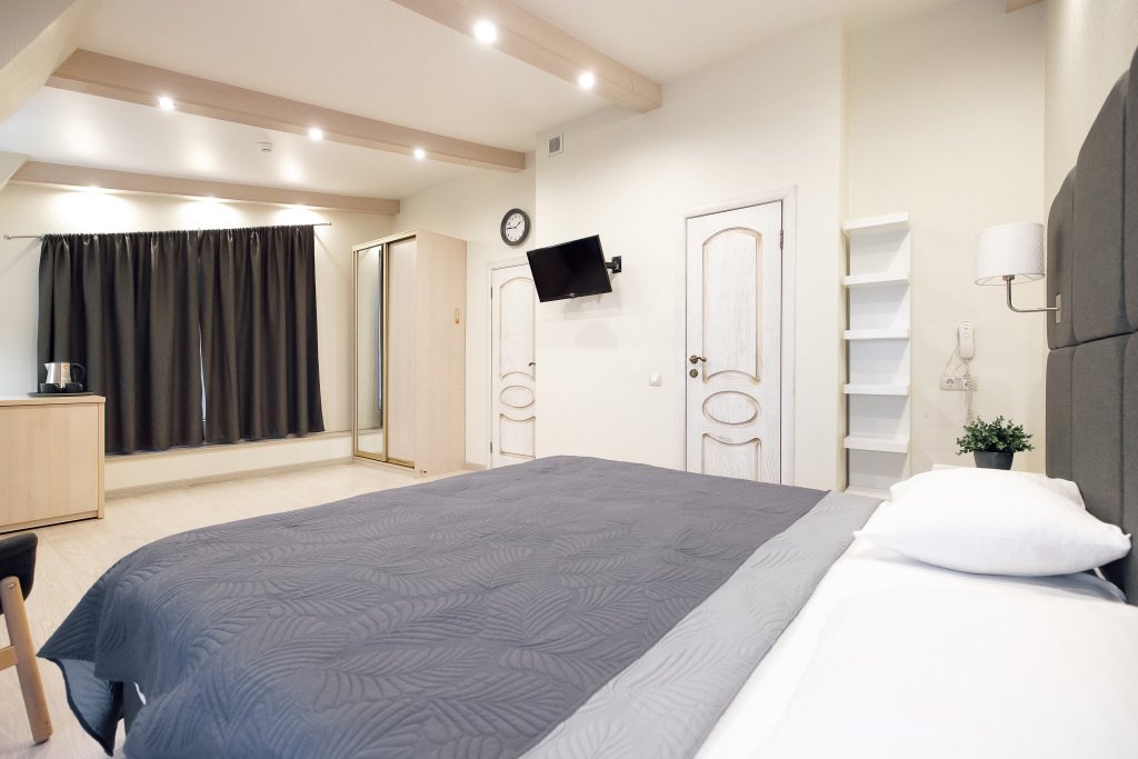 В номере вы найдёте телевизор и халат. Оснащение зависит от выбранной категории номера.