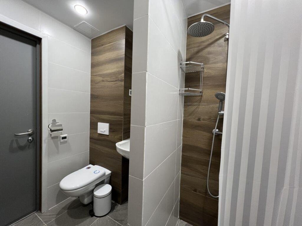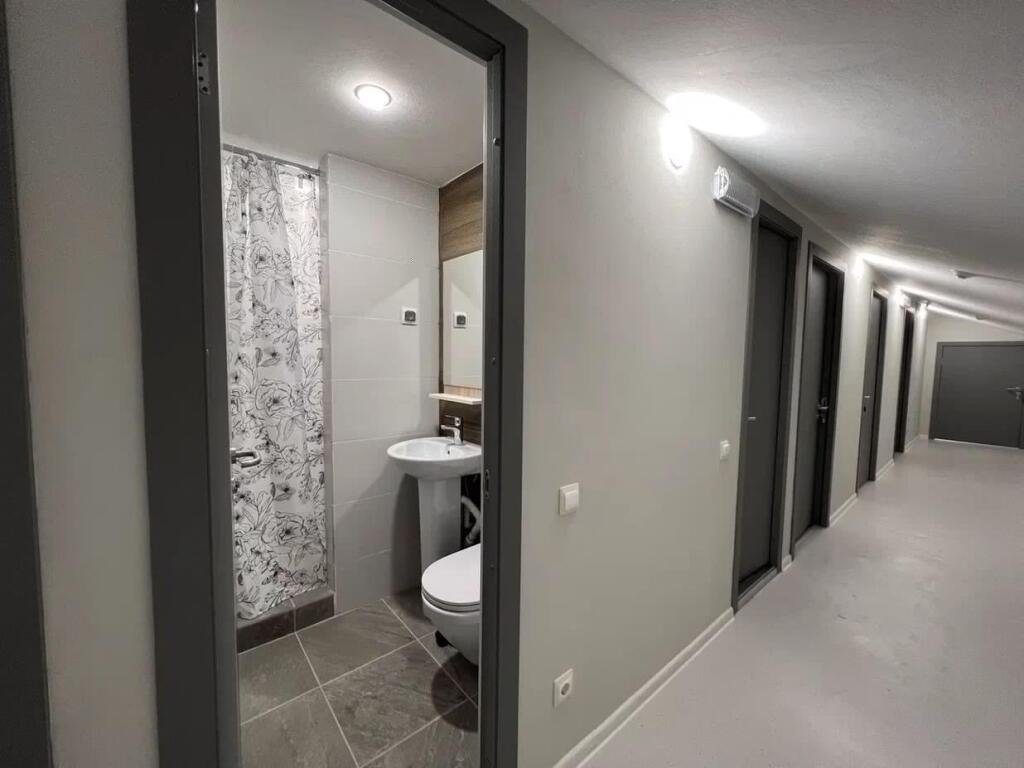 В номере вы найдёте душ, халат и тапочки. Оснащение зависит от выбранной категории номера.