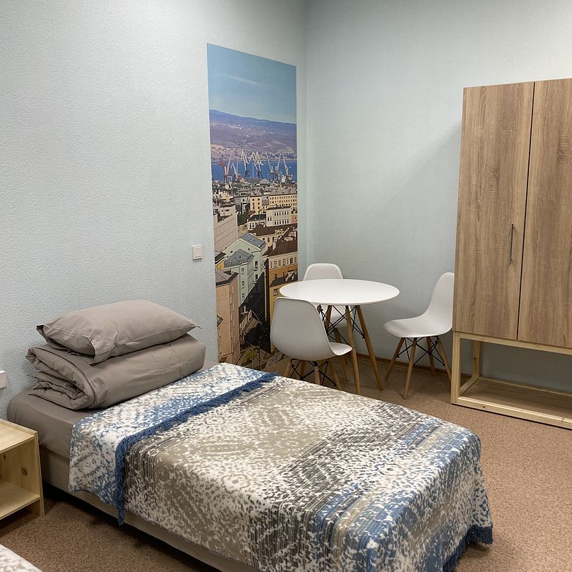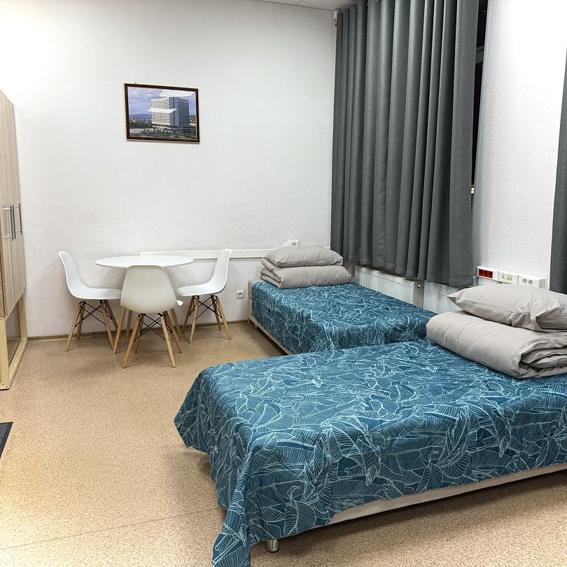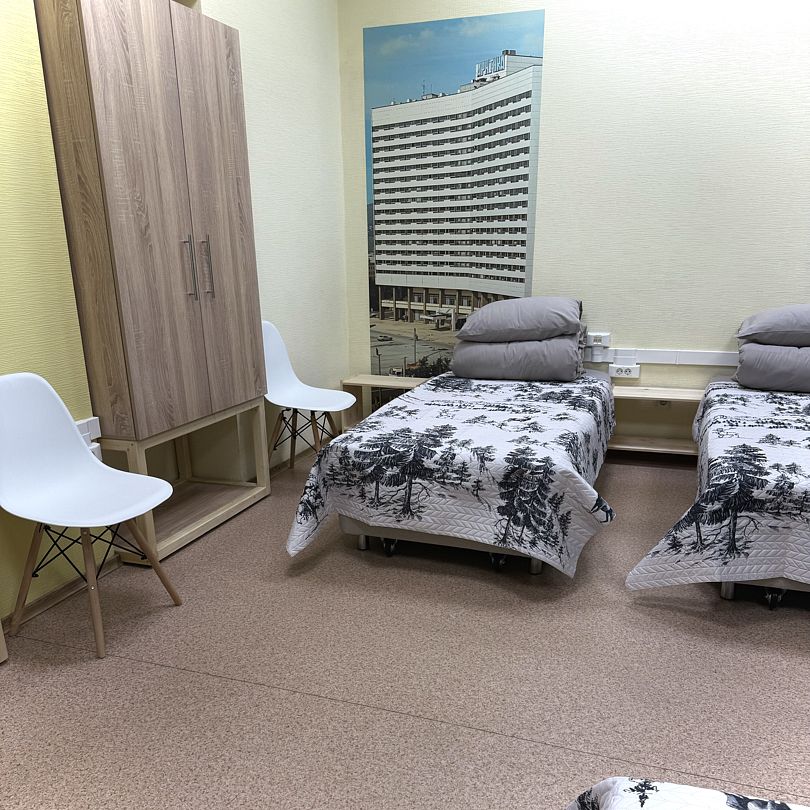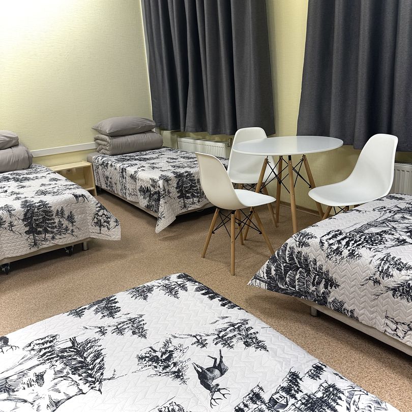Наш 4-местный номер - идеальное место для вашего отдыха. В номере 4 одноместные кровати с прикроватной тумбой. Функциональный шкаф, стол и зеркало. Для вашего комфорта предусмотрены блэкаут шторы. Количество 4-местных номеров в гостинице – 1.