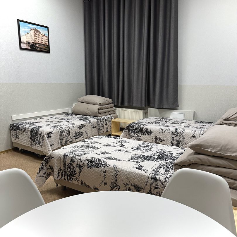 Наш 3-местный номер (площадь 20 кв. м) - идеальное место для вашего отдыха. В номере 3 одноместные кровати с прикроватной тумбой. Функциональный шкаф, стол и зеркало. Для вашего комфорта предусмотрены блэкаут шторы. Количество 3-местных номеров в гостинице – 4.