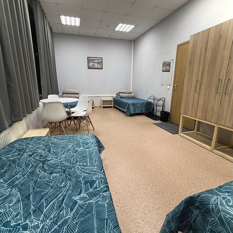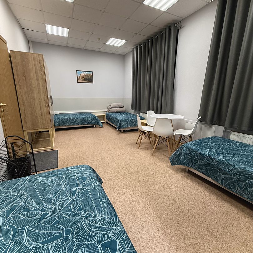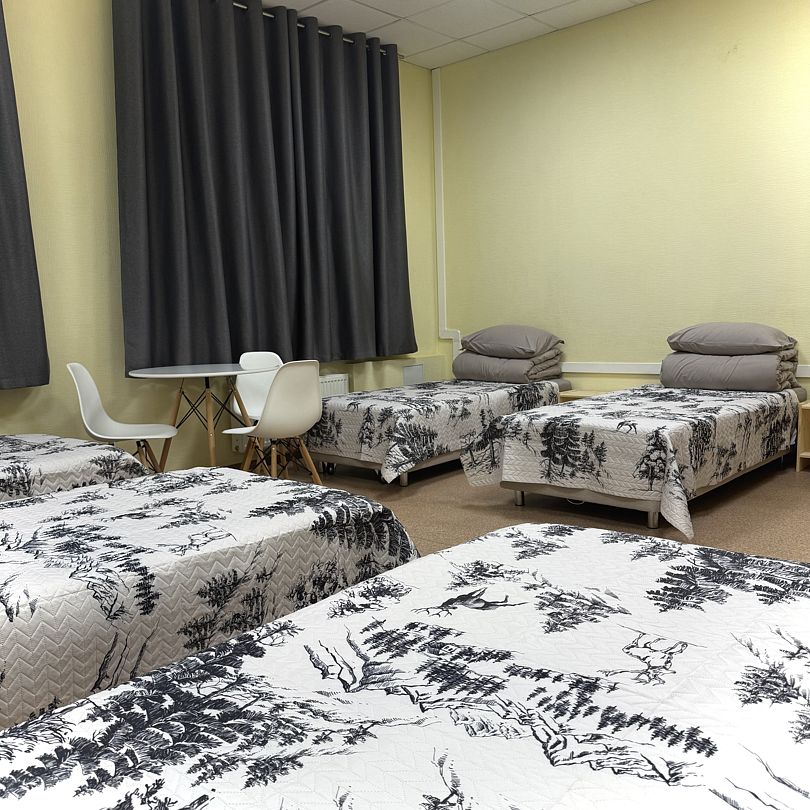 Наш 5-местный номер - идеальное место для вашего отдыха. В номере 5 одноместных кроватей с прикроватной тумбой. Функциональный шкаф, стол и зеркало. Для вашего комфорта предусмотрены блэкаут шторы. Количество 5-местных номеров в гостинице – 2.