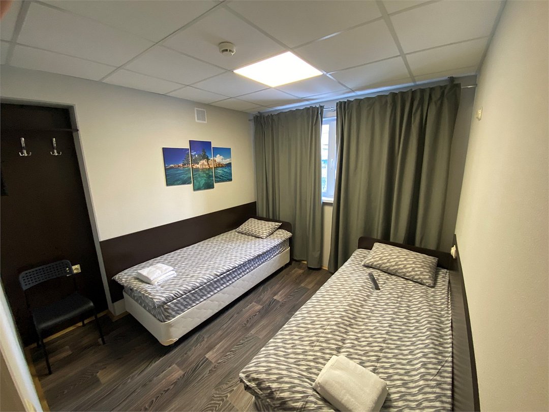 кабельное телевидение, Wi-Fi, две односпальные кровати, стулья, шкаф для одежды, письменный стол, вид на город, кулер на этаже, санузел на этаже, телевизор с плоским экраном, душ на этаже, номер для некурящихВ номере