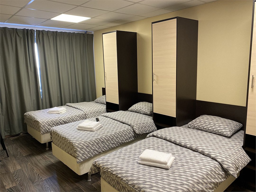 кабельное телевидение, Wi-Fi, стулья, шкаф для одежды, письменный стол, вид на город, кулер на этаже, три односпальные кровати, санузел на этаже, телевизор с плоским экраном, душ на этаже, номер для некурящихВ номере